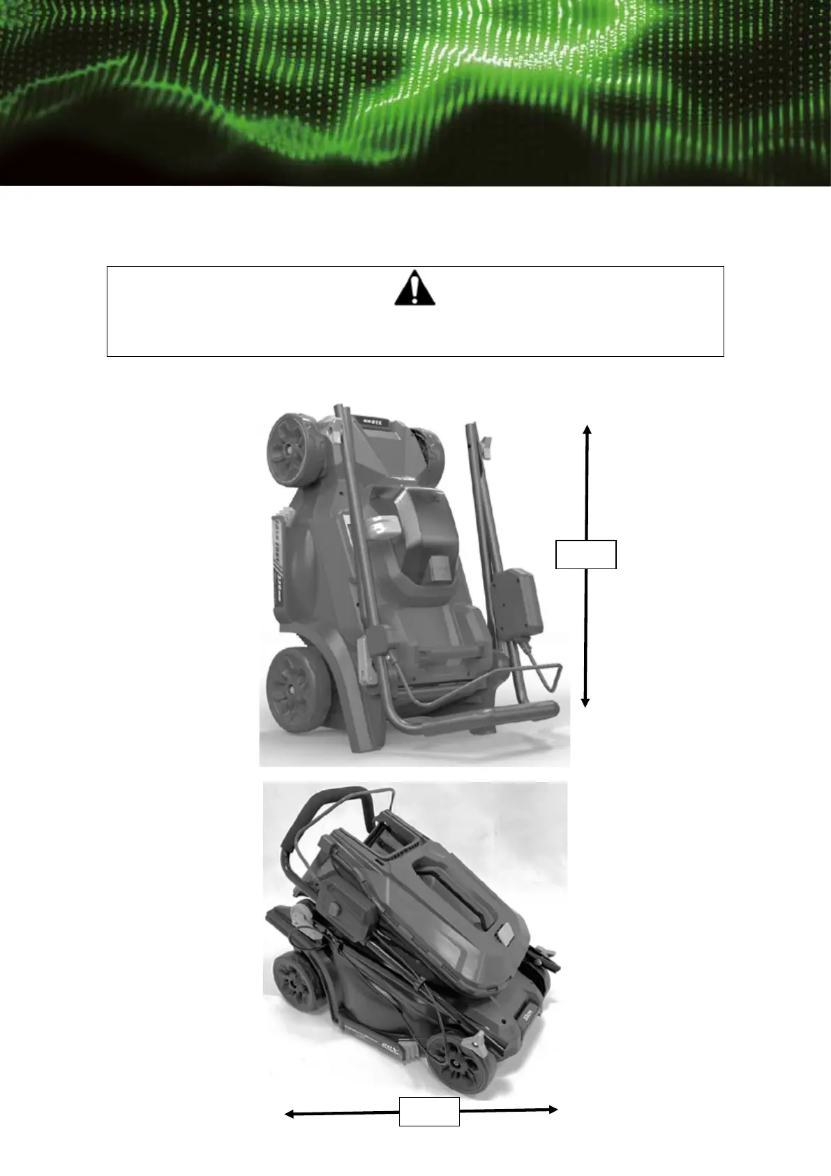 Ϯ Keep the lawnmower in a dry place out of children’s reach. Do not cover the lawnmower, moisture may