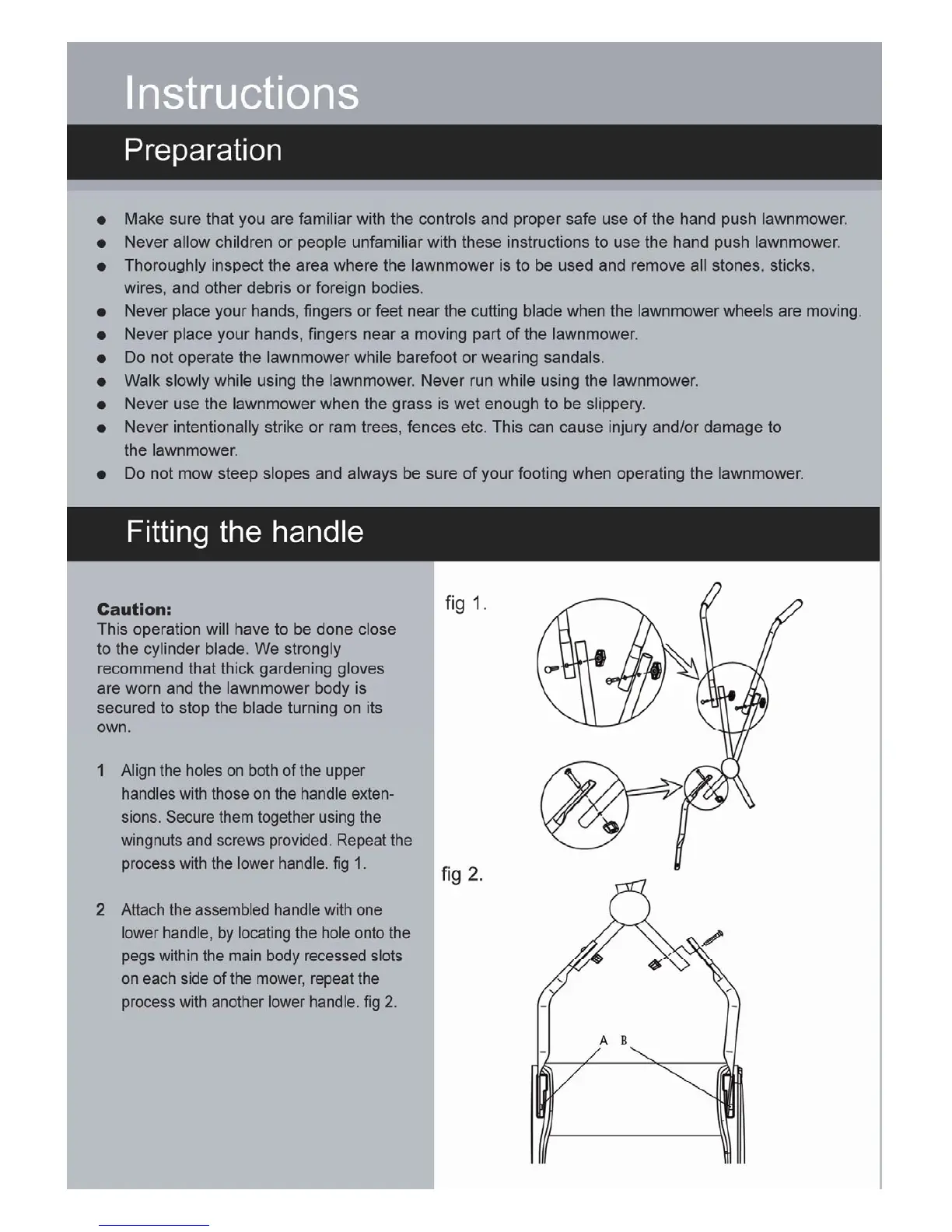 Webb H12R - Preparation and Setup; Lawnmower Preparation; Fitting the Handle Assembly