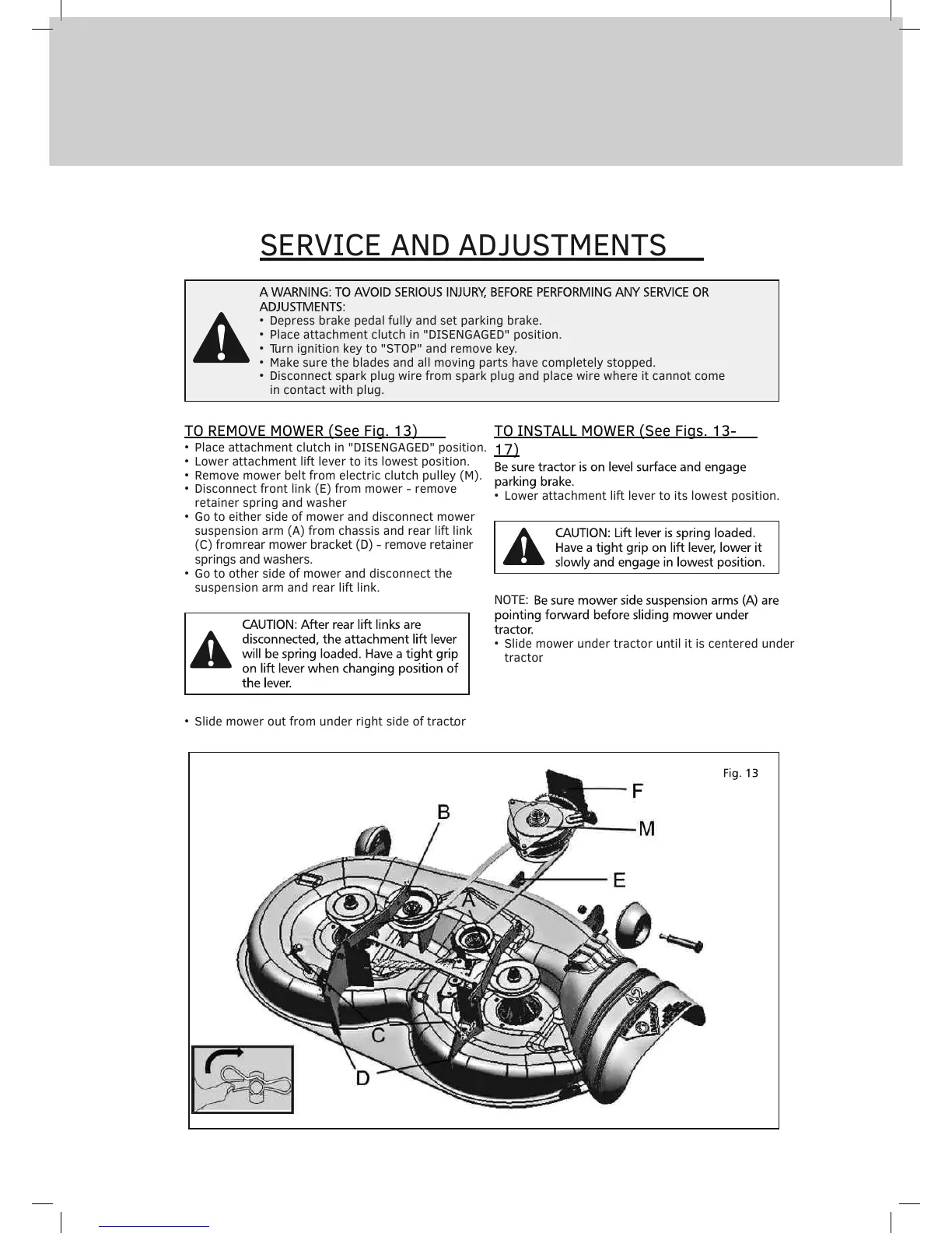 TO REMOVE MOWER (See Fig. 13)