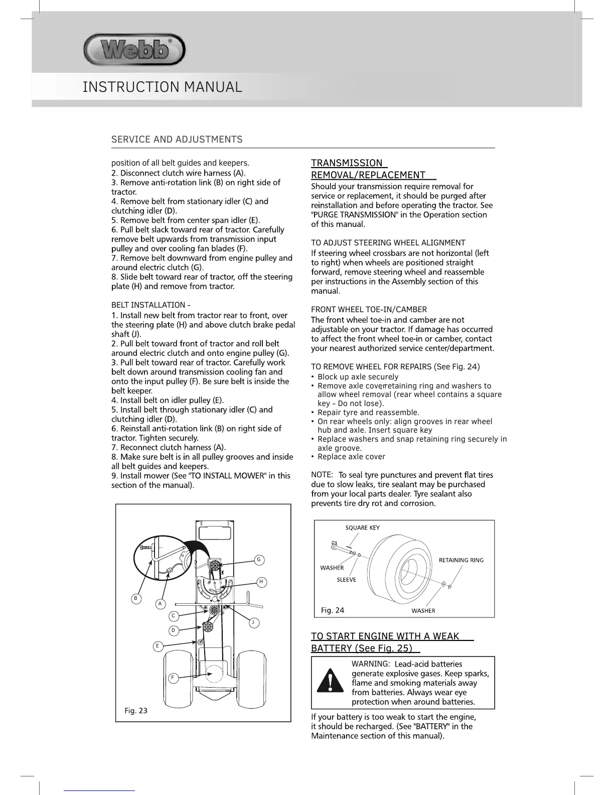 TO REMOVE WHEEL FOR REPAIRS (See Fig. 24)
