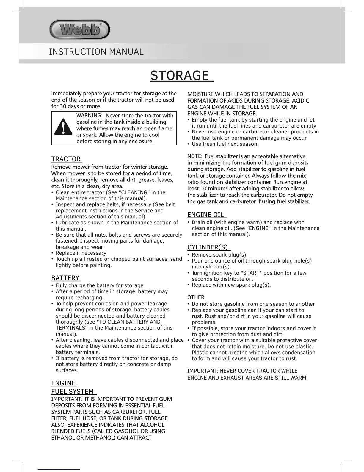 IMPORTANT: NEVER COVER TRACTOR WHILE