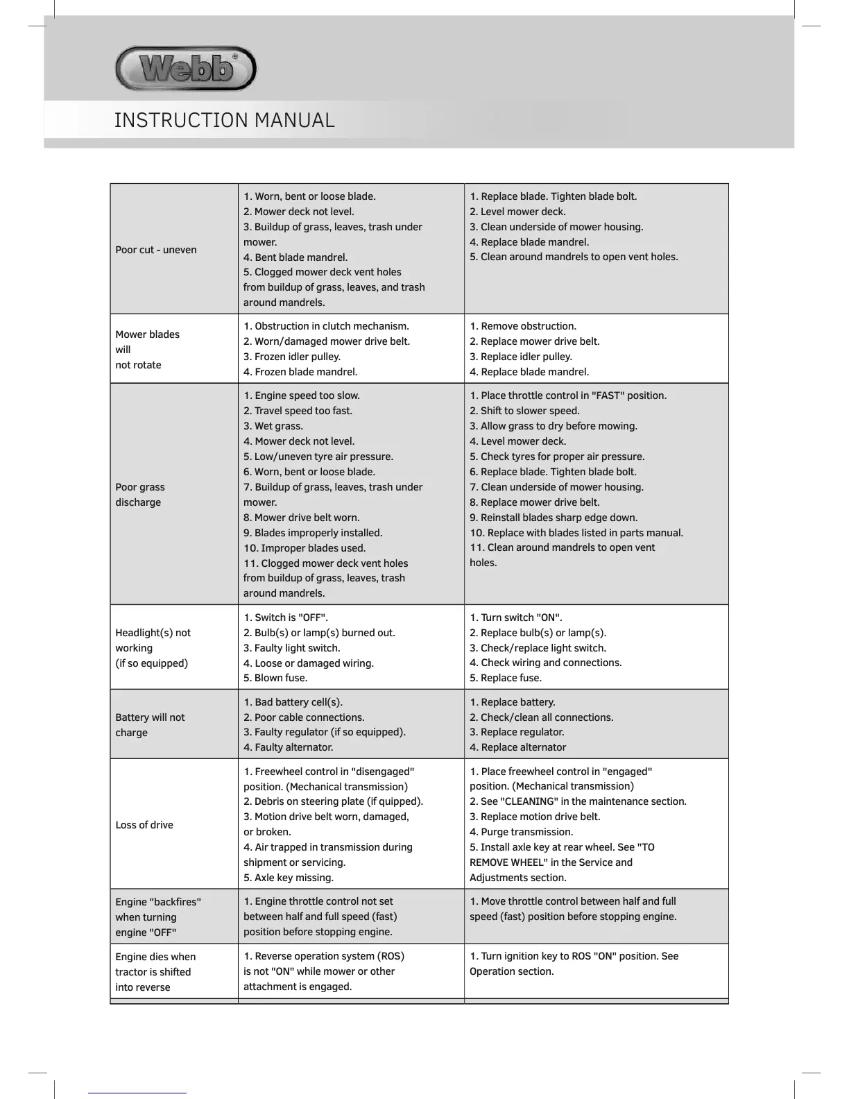 10. Replace with blades listed in parts manual.