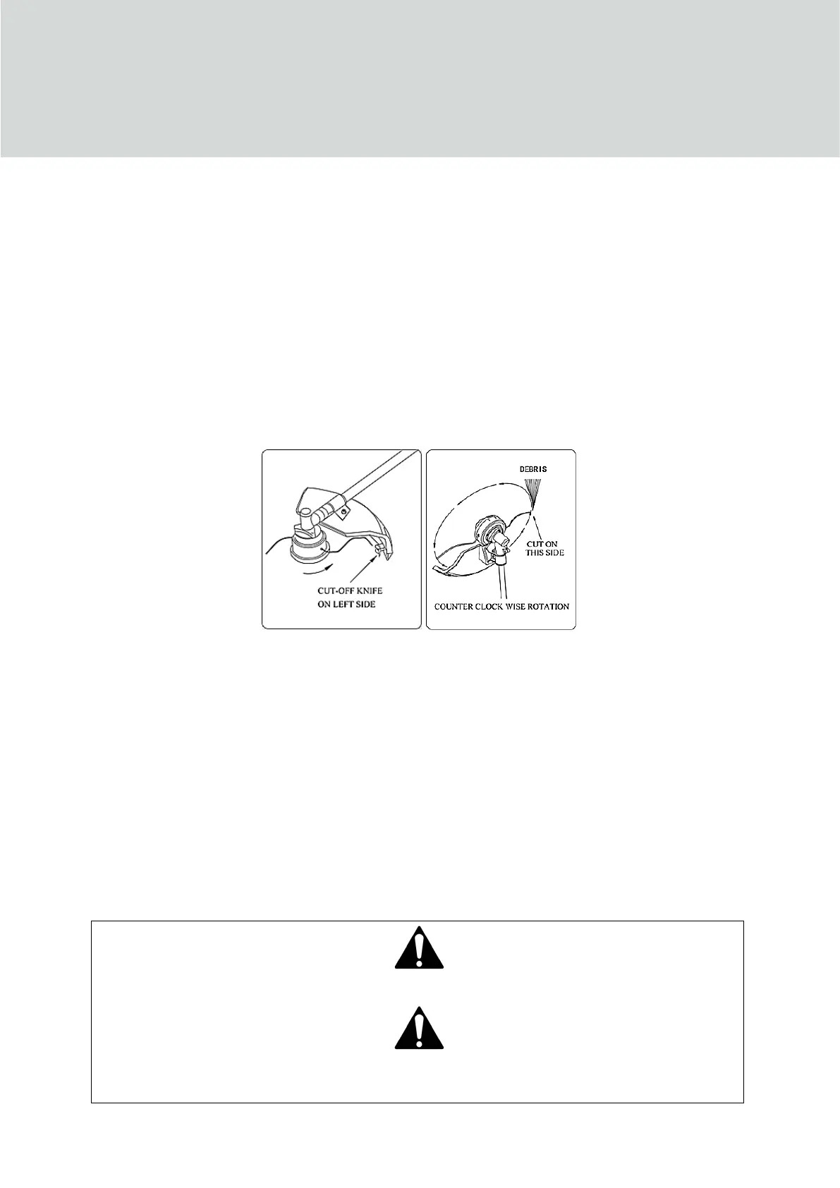 ThelinetrimmernylonheadrotatesinanANTI-CLOCKWISEdirection.Theknife,locatedontheleftsideofthe