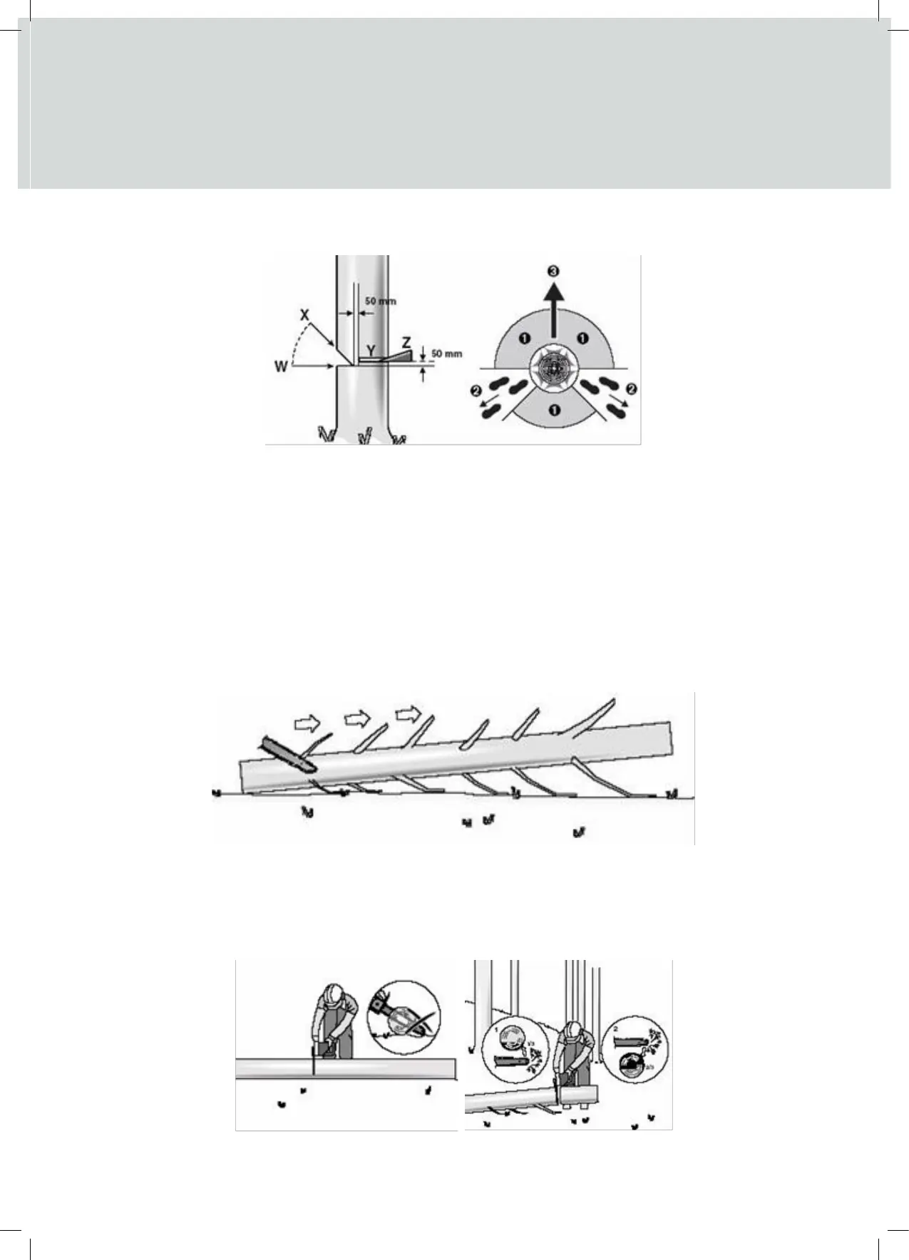 footing. To complete the felling operation, drive a wedge (Z) into the horizontal cut. Beware of falling branches