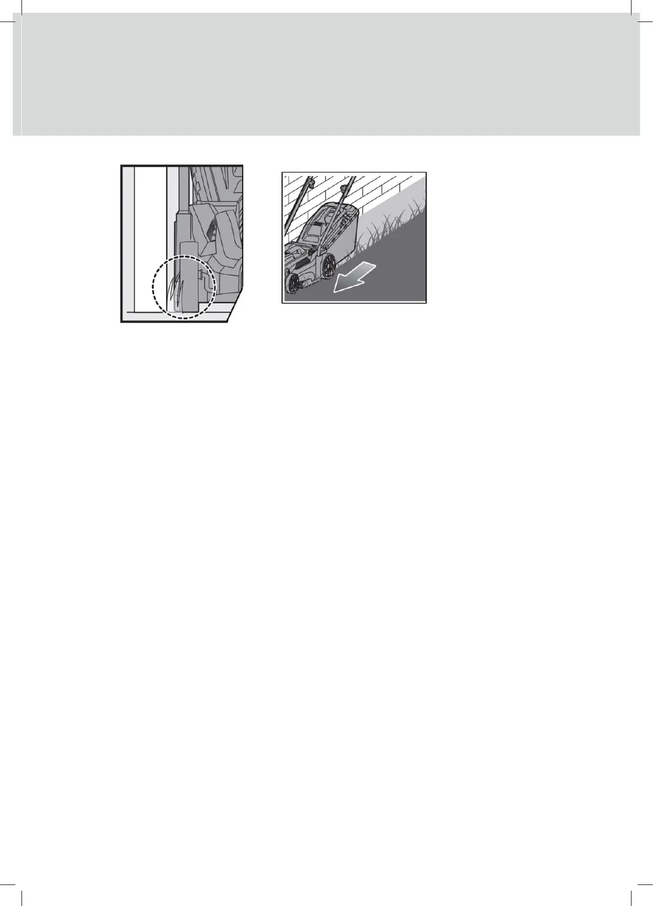 When cutting on slopes, ensure your footing is secure, the grass is not wet and the machine is