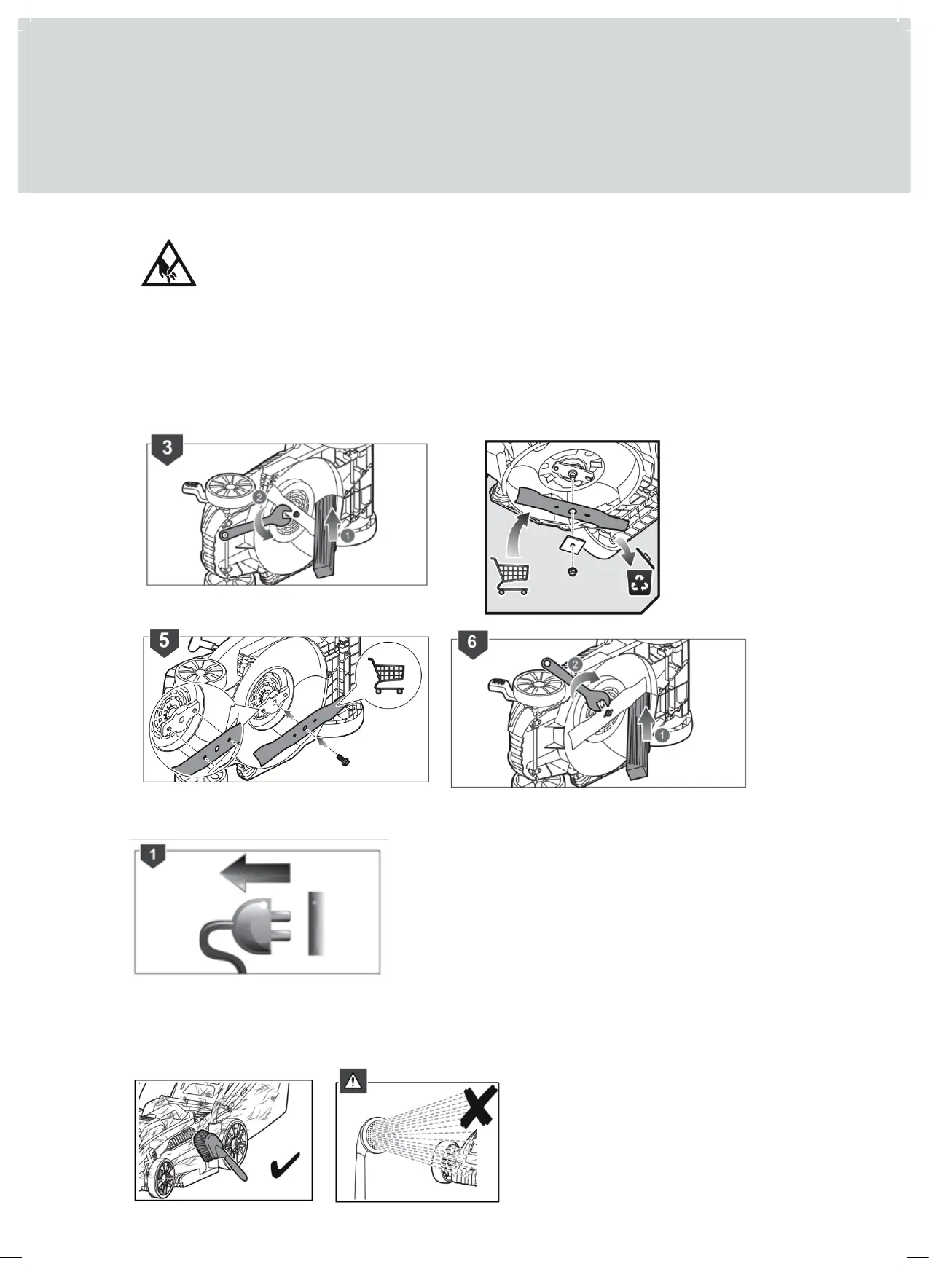 5. Check the grass flap and grassbox collector frequently for wear and deterioration.