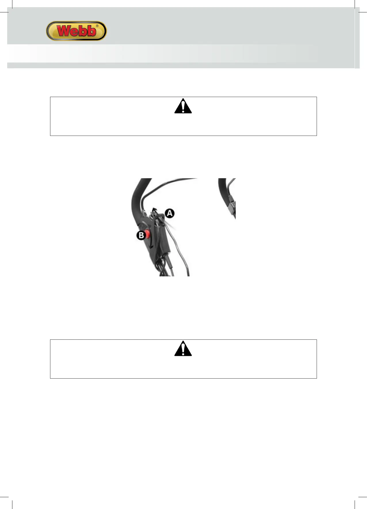 3. Press the safety button (A) and whilst depressed, pull the OPC/Brake lever up to the upper handle.