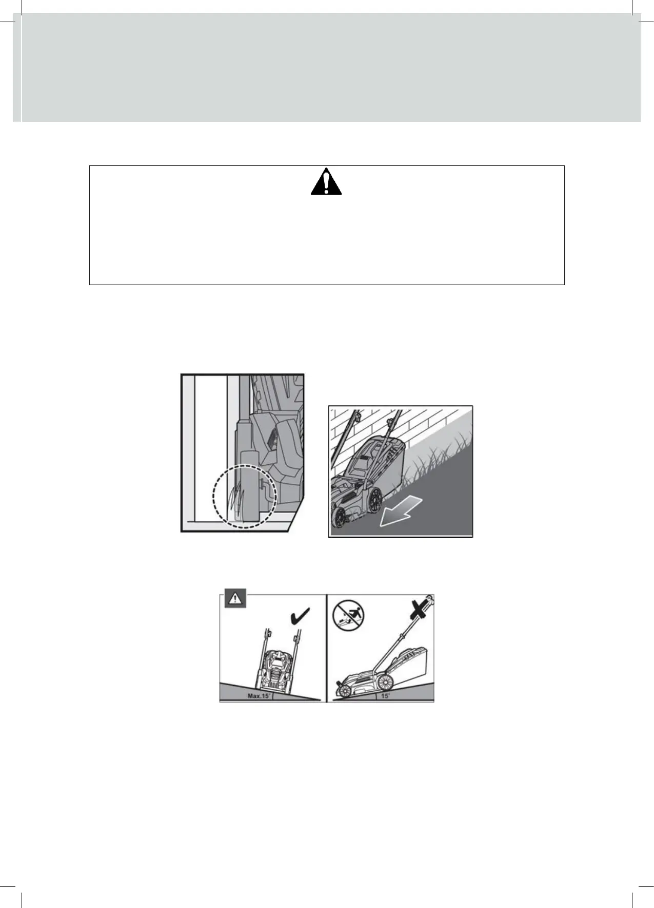 When cutting on slopes, ensure your footing is secure, the grass is not wet and the machine is used across