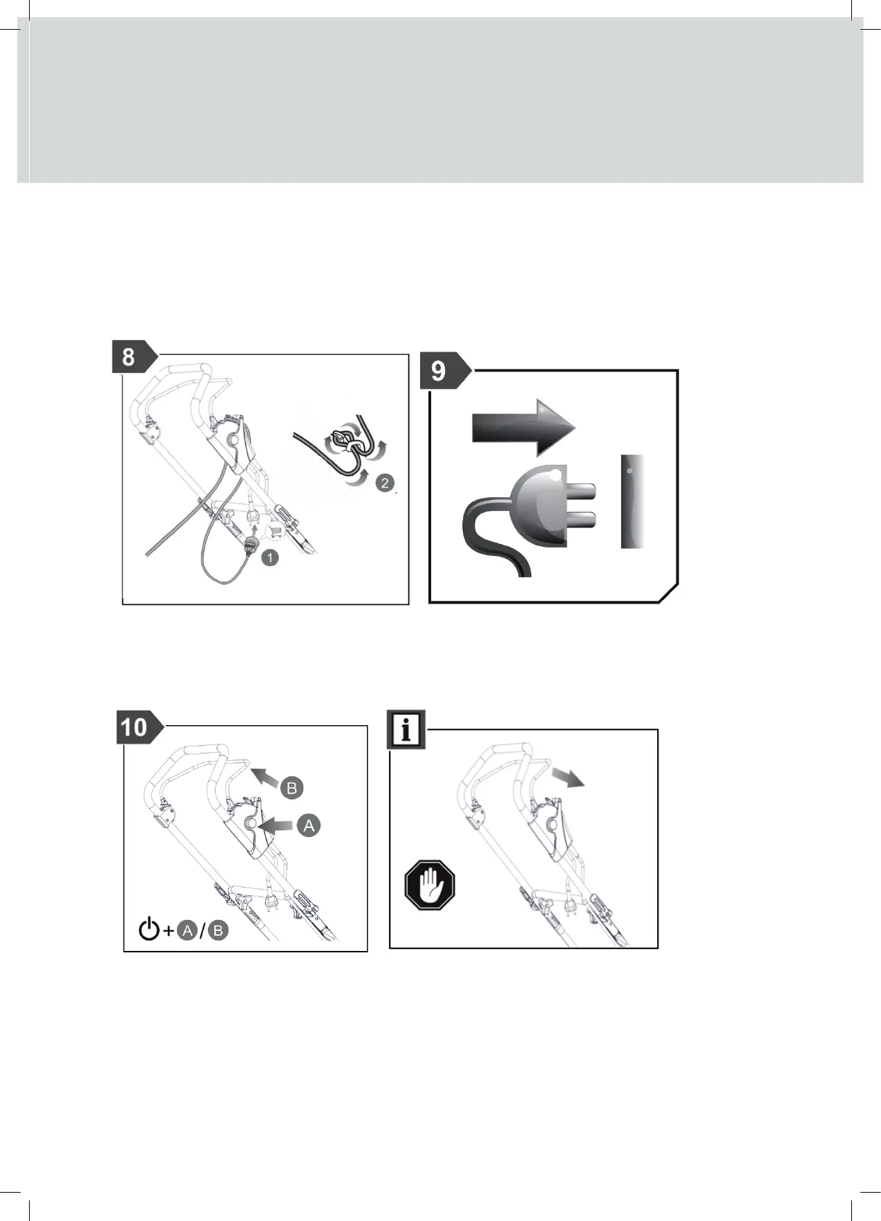 Press the Safety Button (A) and pull the OPC Lever (B) towards the main handle. The mower will start