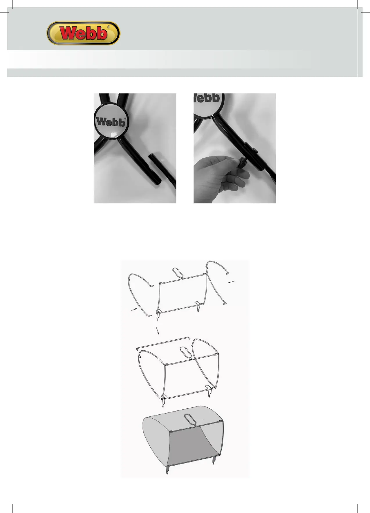 3. Fit the fabric collector over the frame, ensuring the split securing plastic u-shape is secured around the