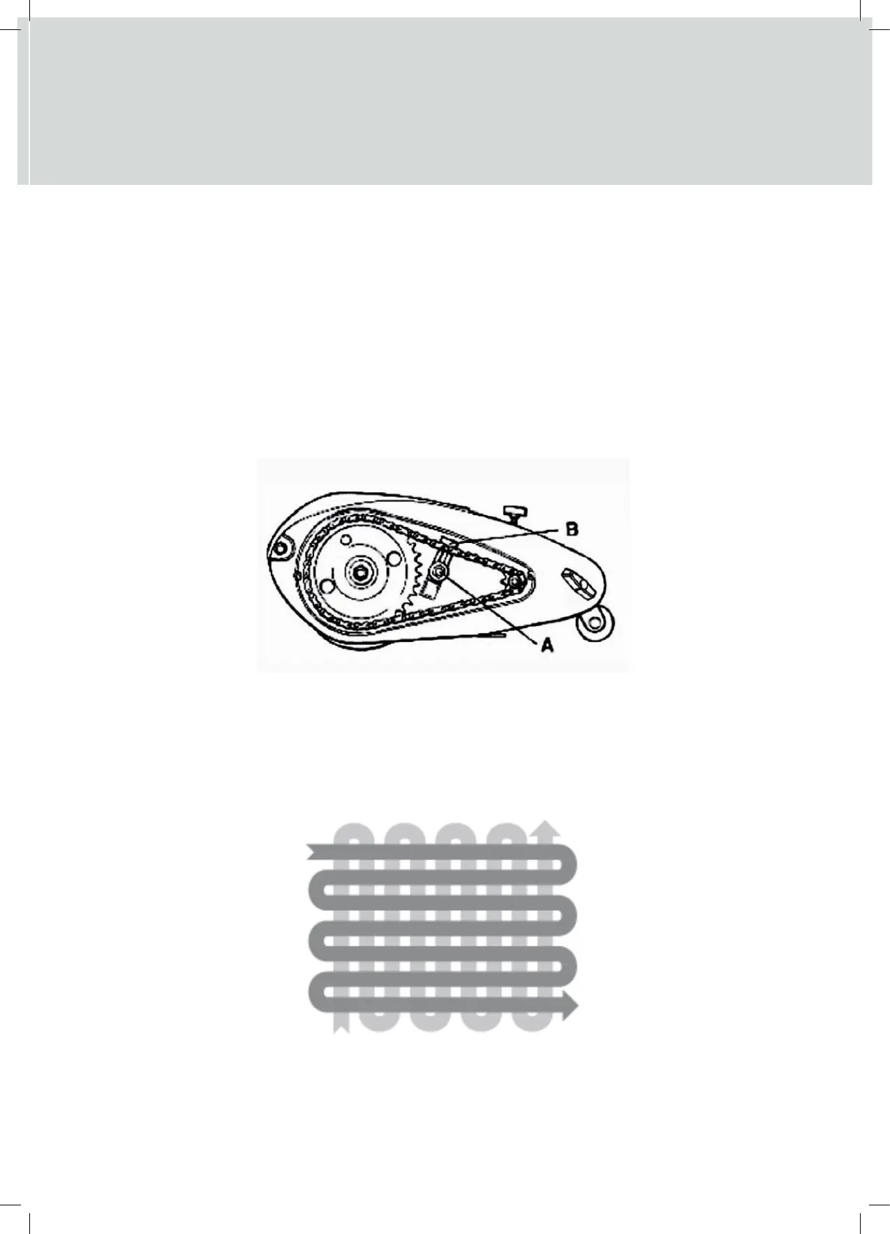 5. Note at what point the chain causes the chain skate (B) to rise at its peak, and at that point, tighten the
