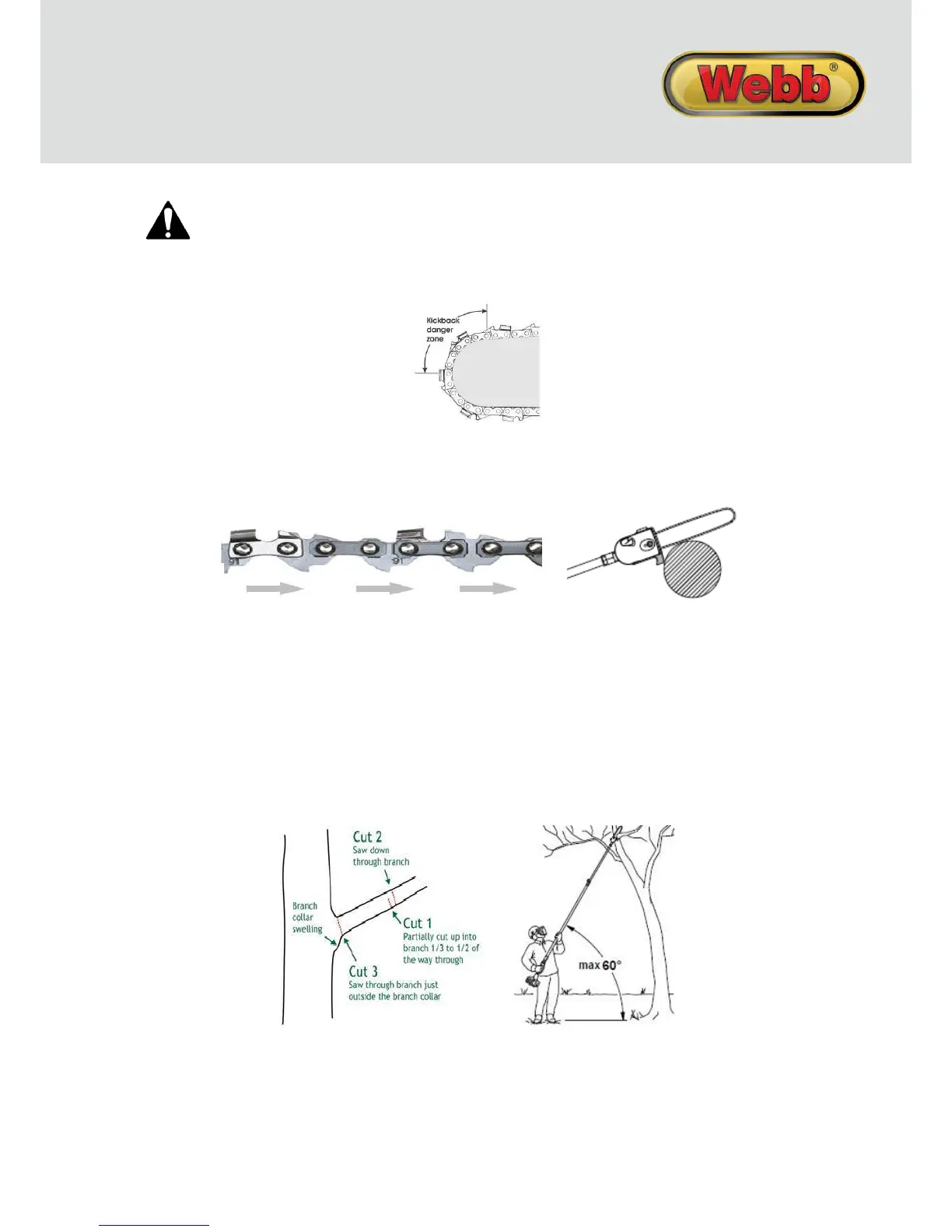 Do not work at an angle, higher than 60 degree’s, there is a danger of being injured by branches falling