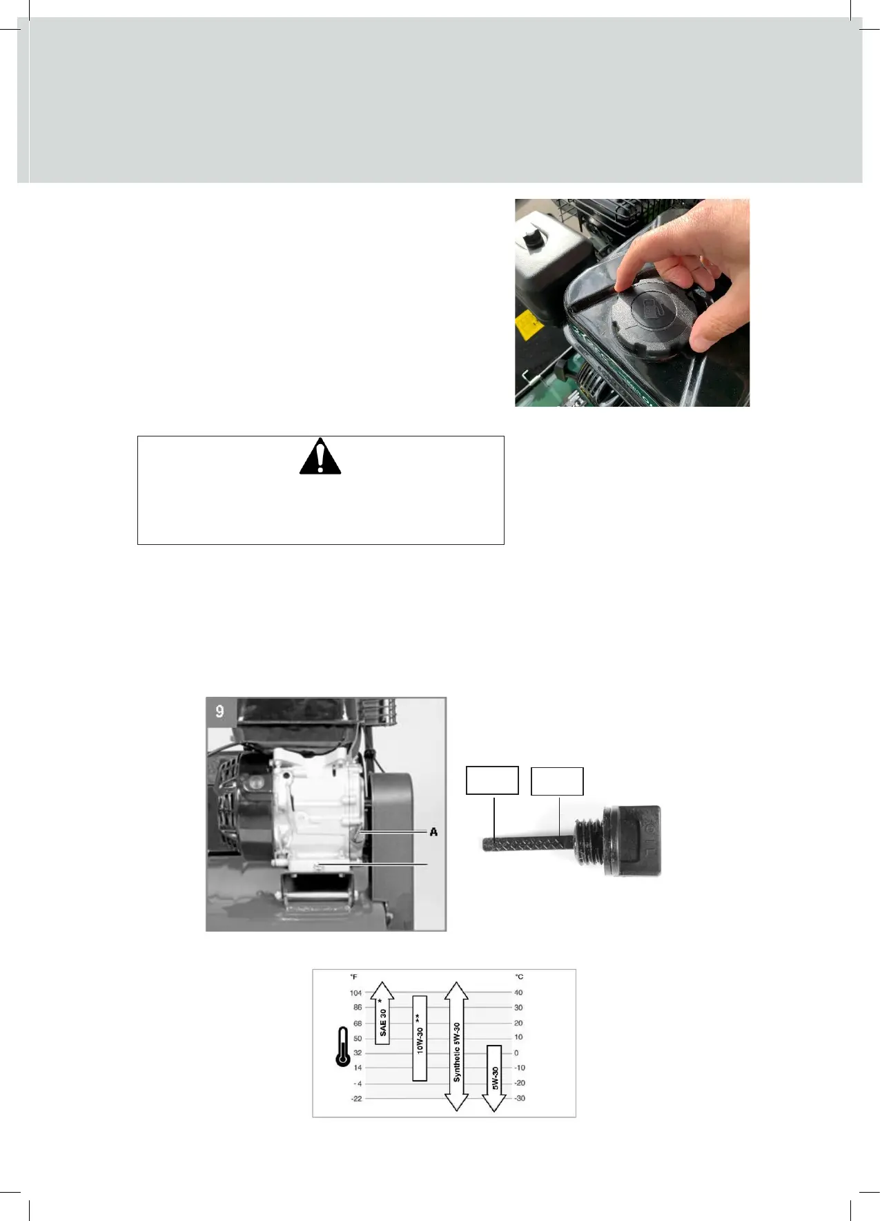 NOTE: Below 40F° (4°C) the use of SAE 30 will result in hard starting.