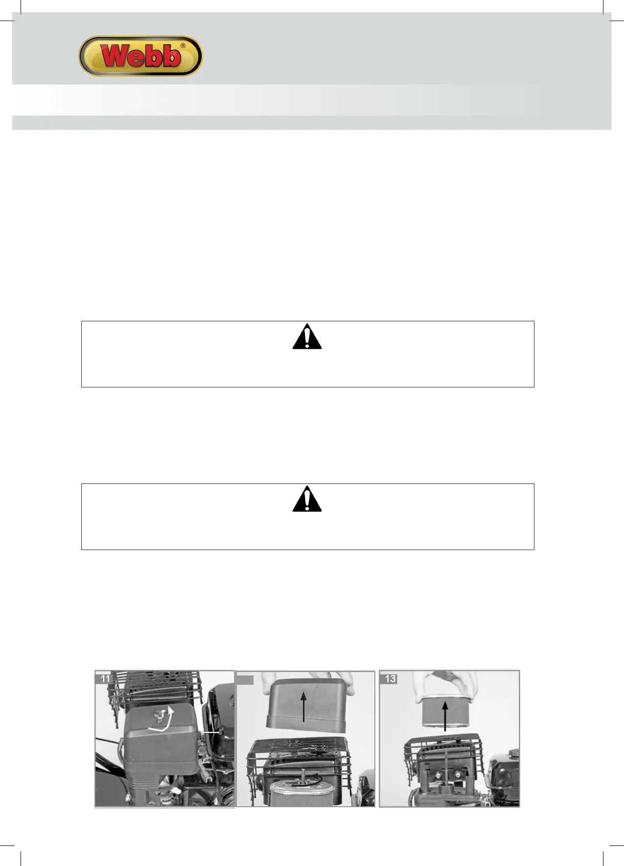 Never clean the air filter with petrol or inflammable solvents.