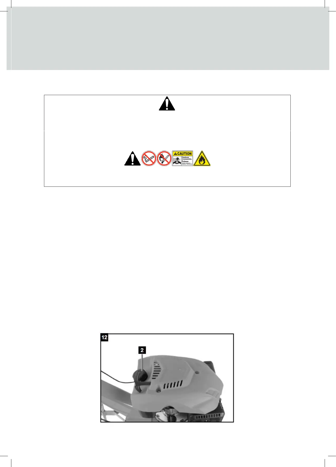 Fuel & its vapors are very flammable. Do not use or fuel the machine near a flame, sparks or while smoking.