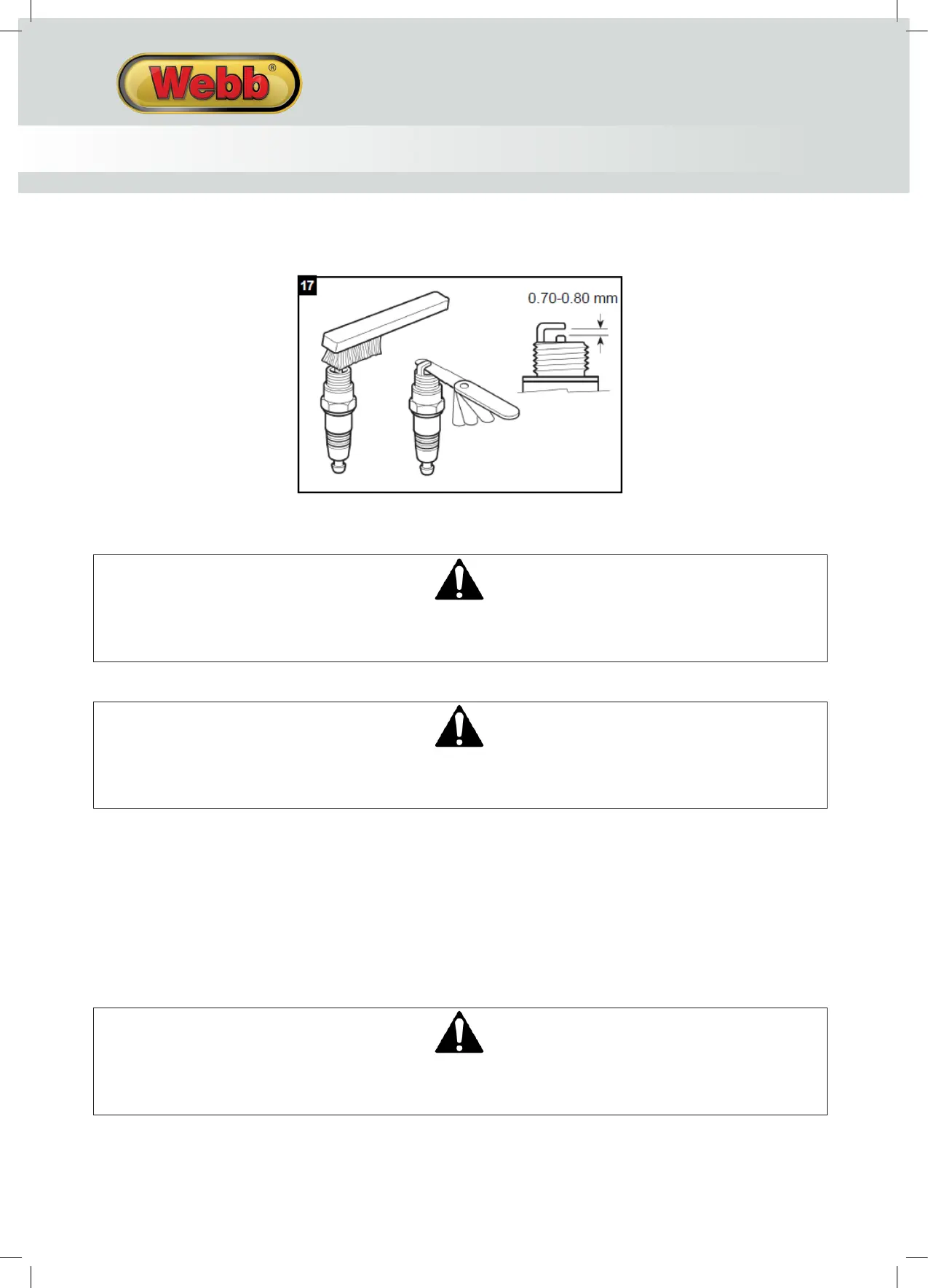 3. Measure the plug gap with a feeler gauge. The gap should be 0.7‐0.8mm (0.028‐0.031 in), correct as