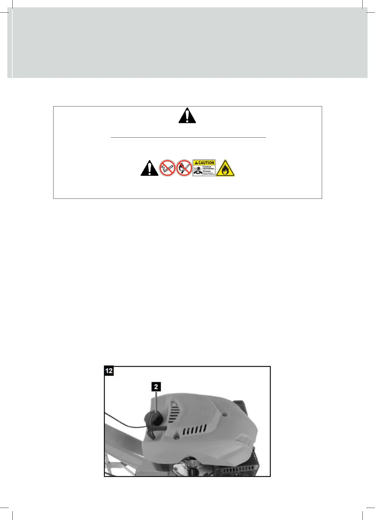 Fuel & its vapors are very flammable. Do not use or fuel the machine near a flame, sparks or while smoking.