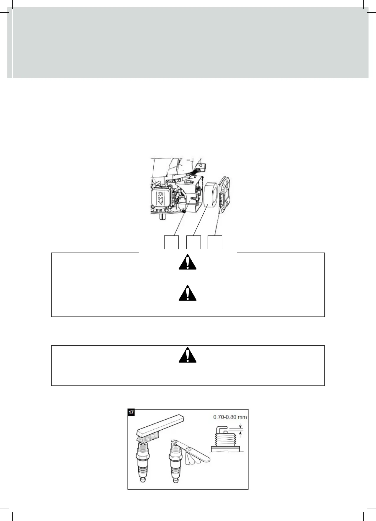 3. Measure the spark plug gap with a feeler gauge. The gap should be 0.7‐0.8mm (0.028‐0.031 in), correct as