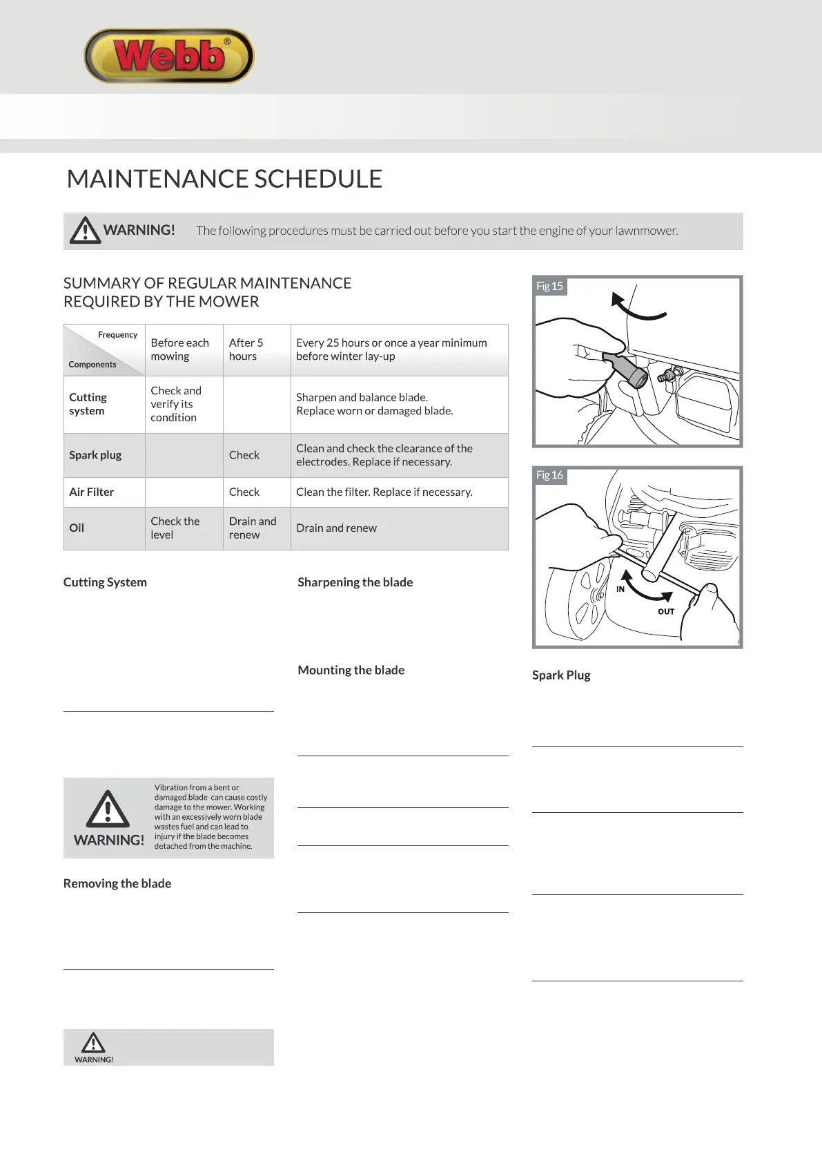 the blade. Disconnect the spark plug cap