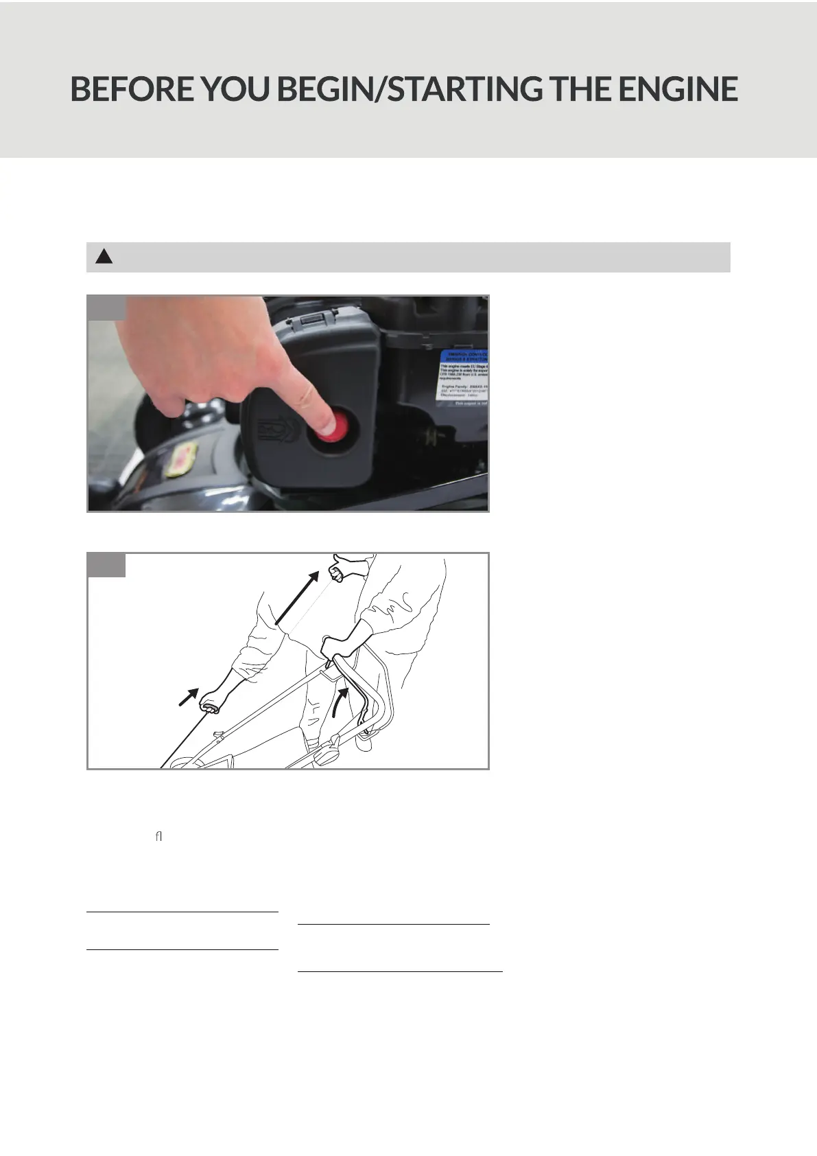 The following procedures must be carried out before you start the engine of your lawnmower.