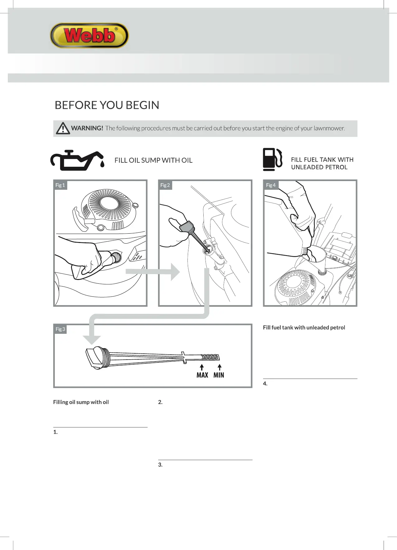 The mower is supplied without oil in the
