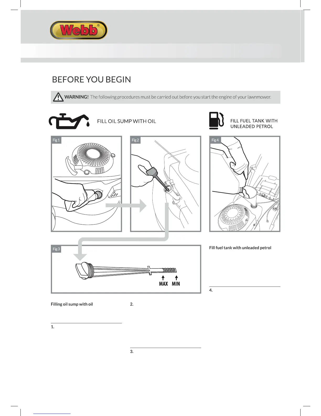 The mower is supplied without oil in the