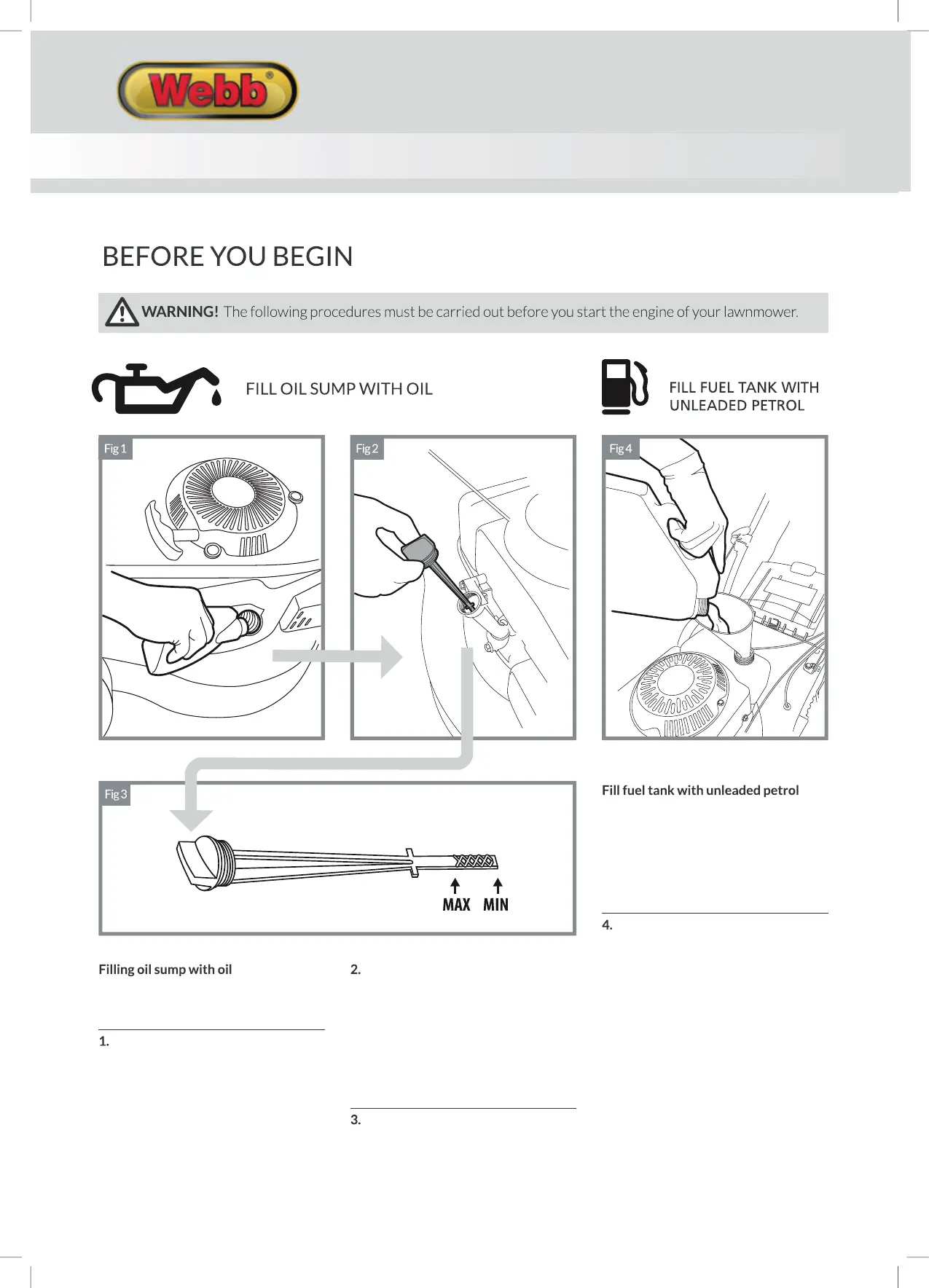 The following procedures must be carried out before you start the engine of your lawnmower.