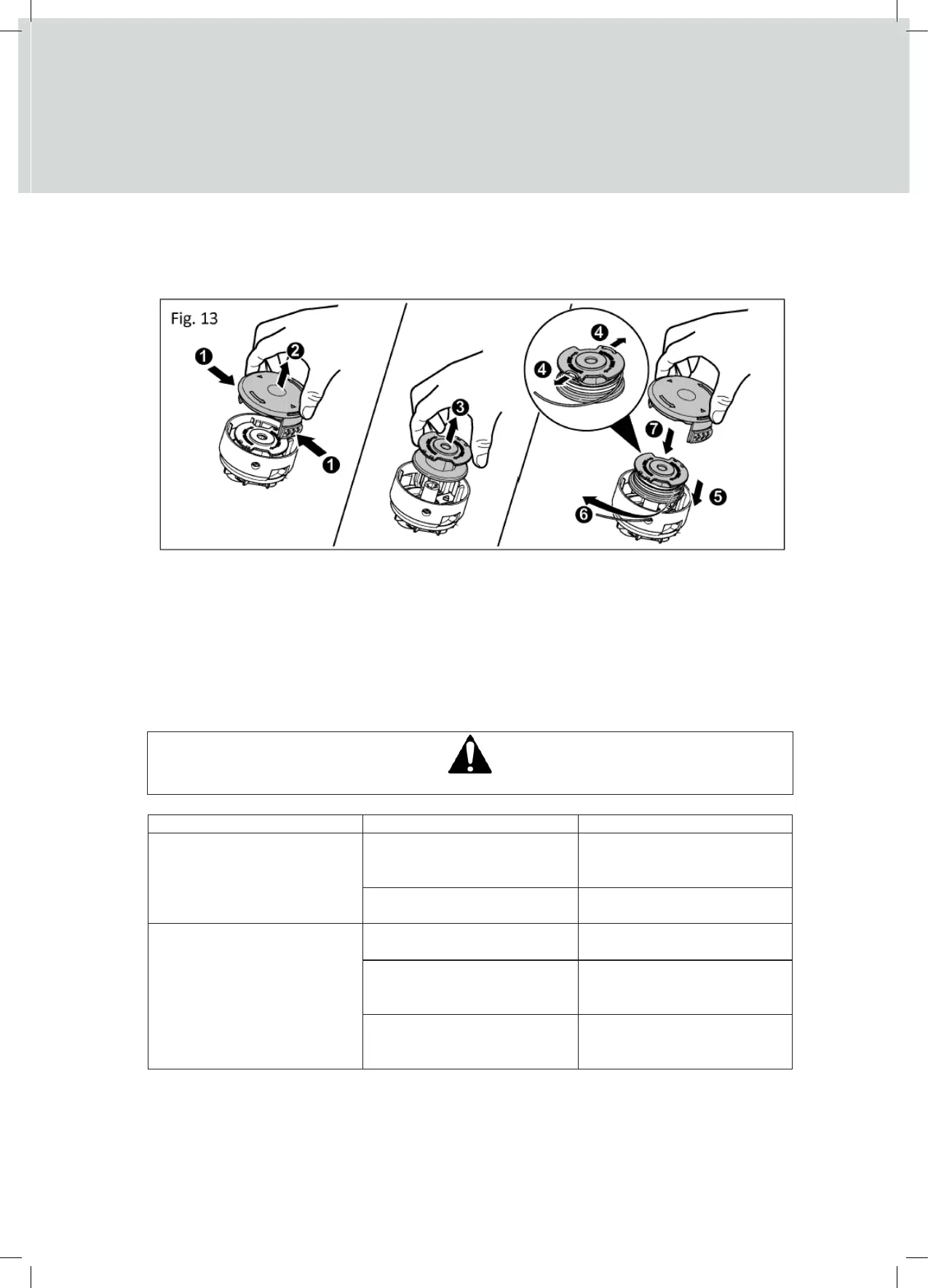From time to time, especially when cutting thick or stocky weeds, the line feeding hub may become