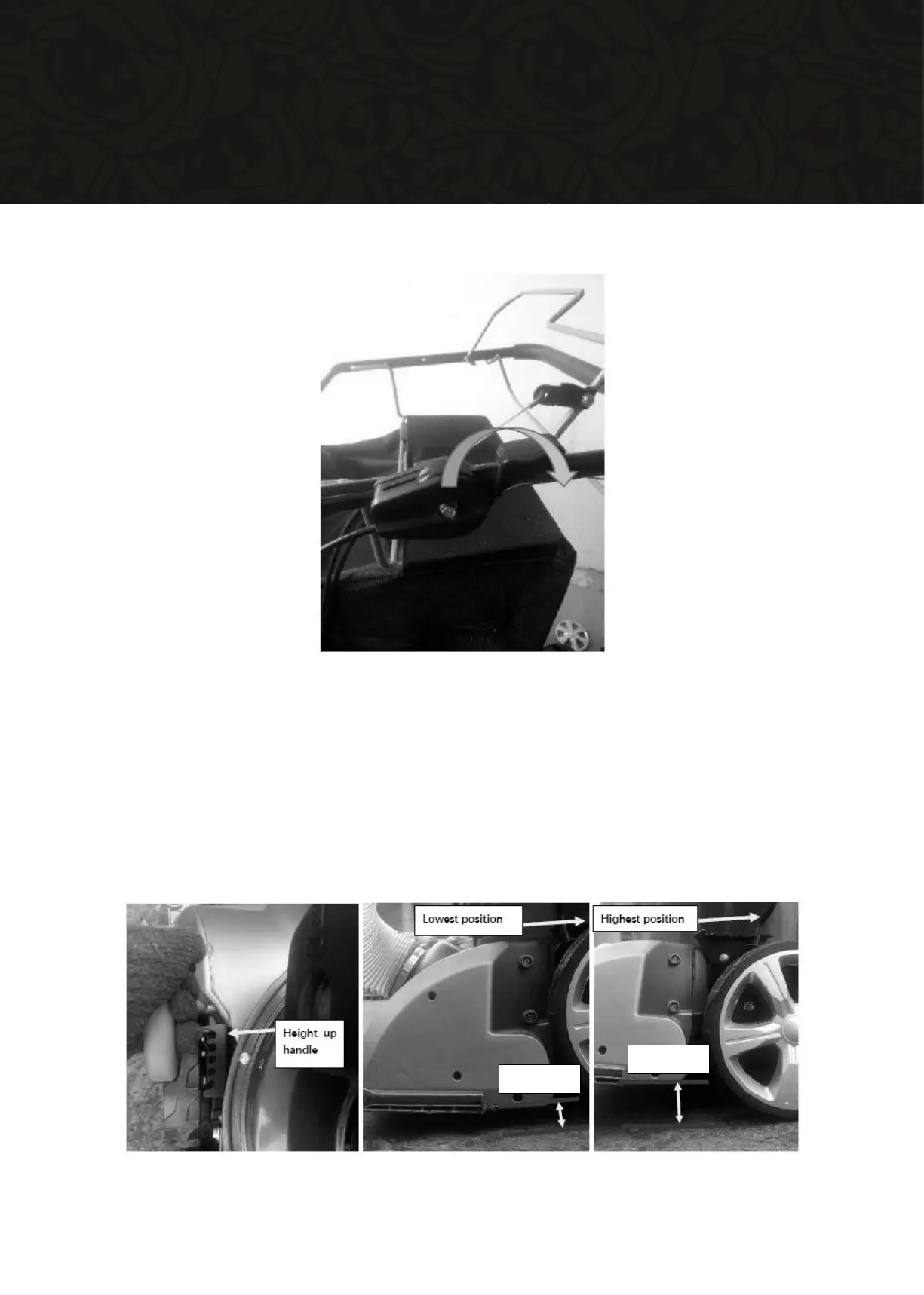 Ϯ Pull the height adjustment handle away from the deck and move up or down to relocate in your chosen
