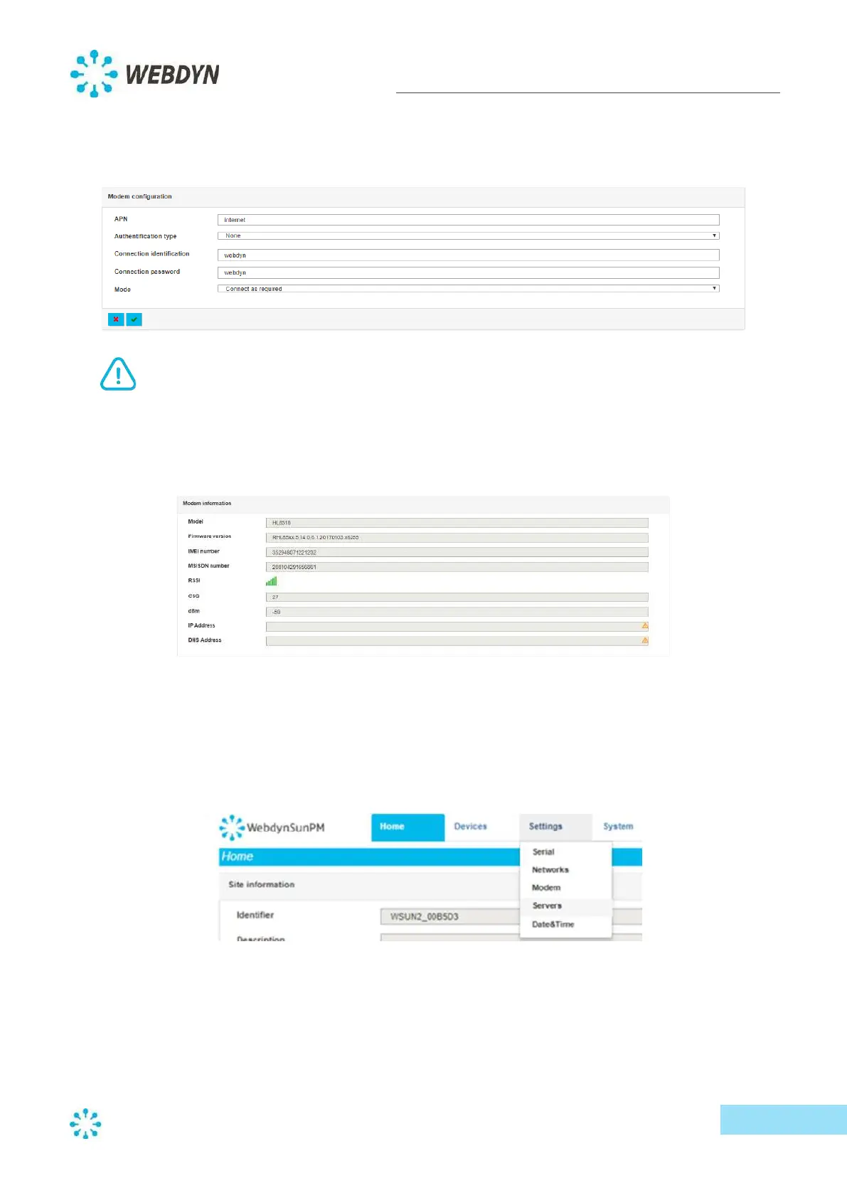 The WebdynSunPM concentrator supports configuration of one or two servers for data and alarm