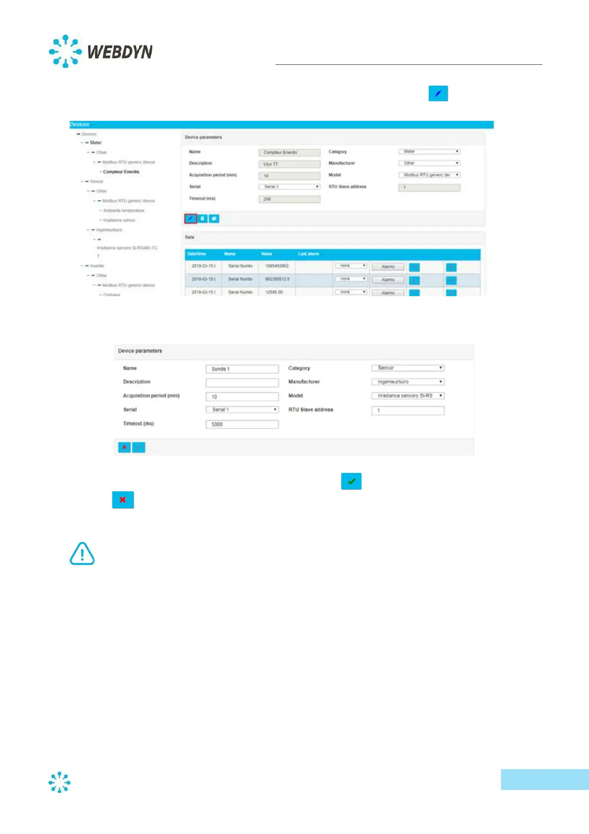 You can edit a device by selecting it from the device list, then clicking on the edit button