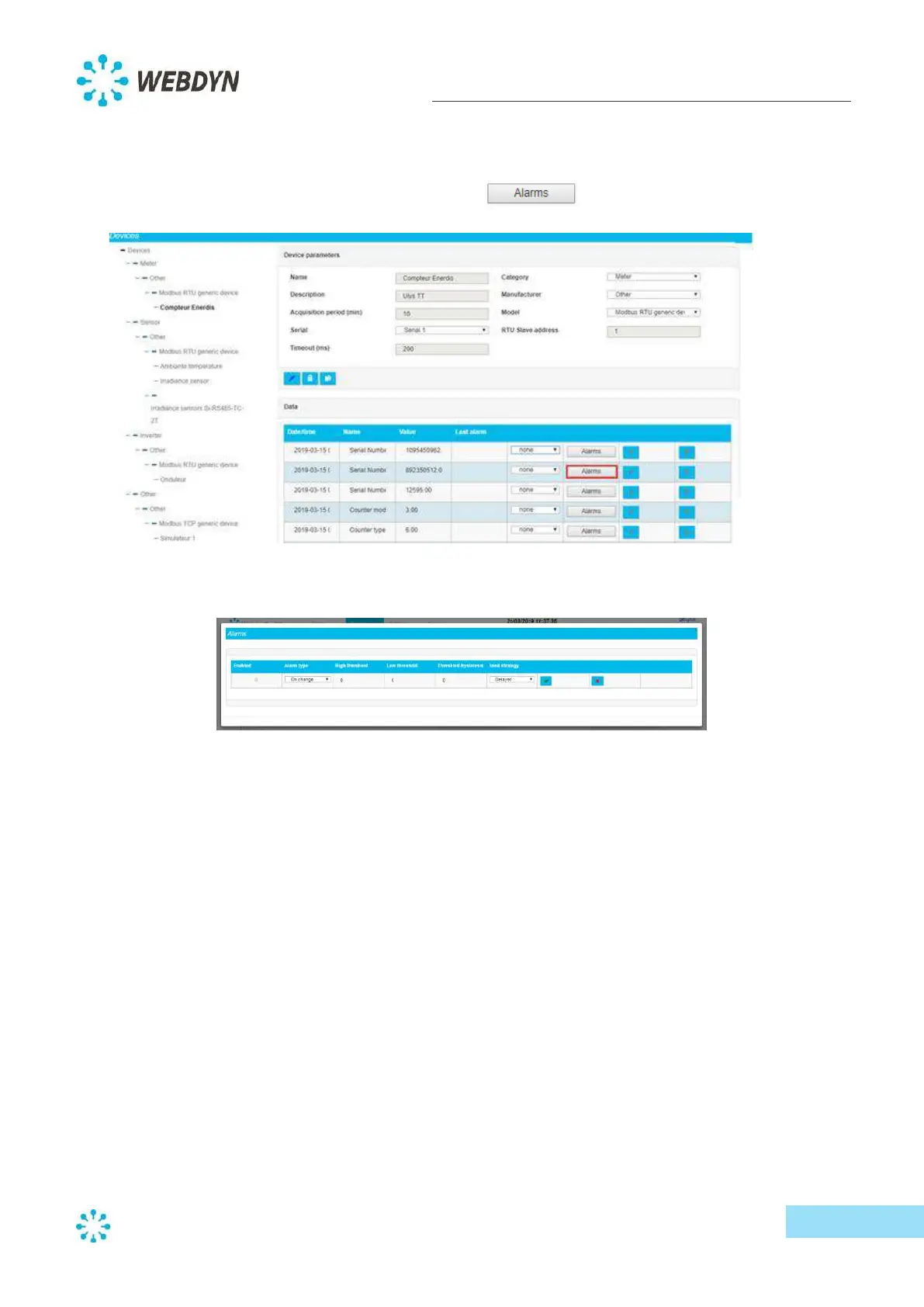Remember to enter any additional information to configure each alarm (such as high threshold, set