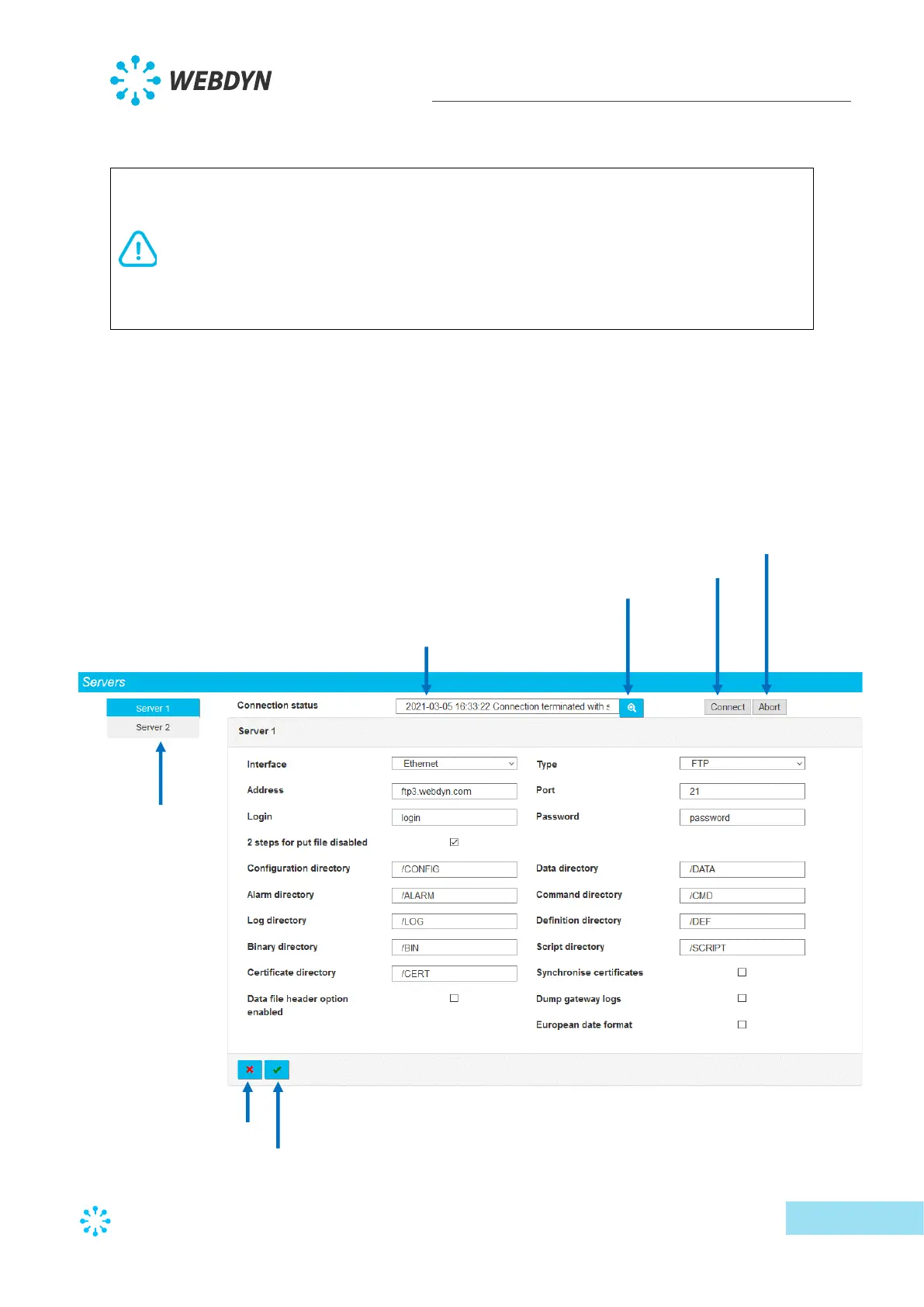 The “Servers” part is used to configure the 2 servers available on the concentrator and