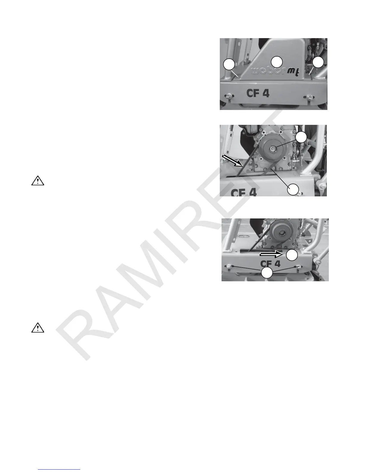 - Increase the V-belt's tension by means of the 4 fastening screws
