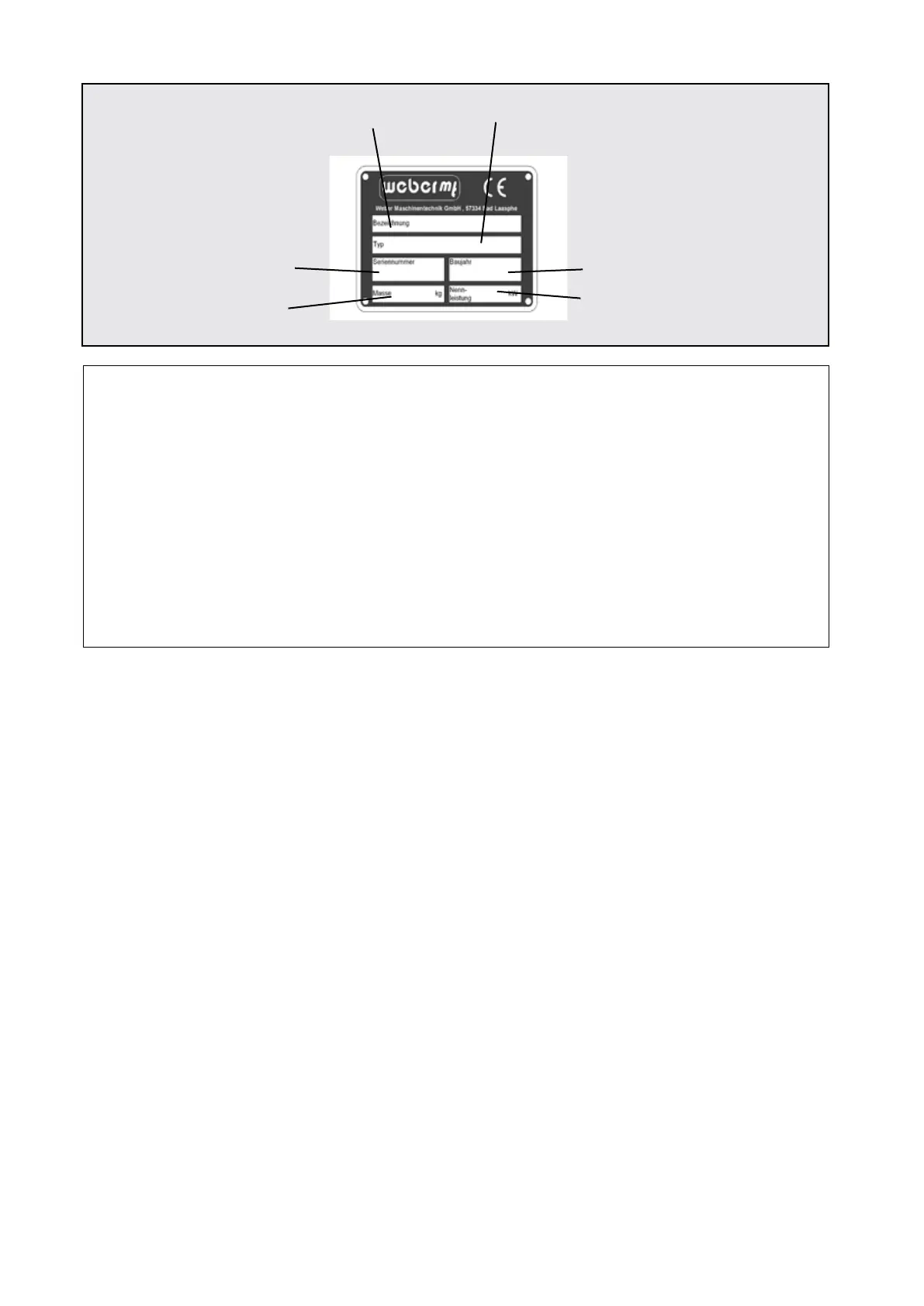 Weber mt CR 5 - Data Plate Information; Identification and Specifications