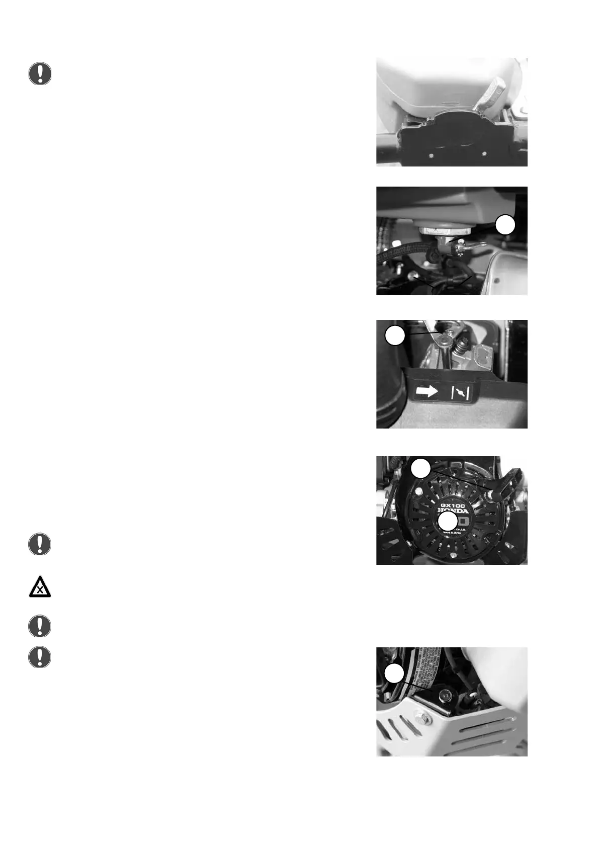 Slowly tighten the handle (1) of the reversing starter (2) until
