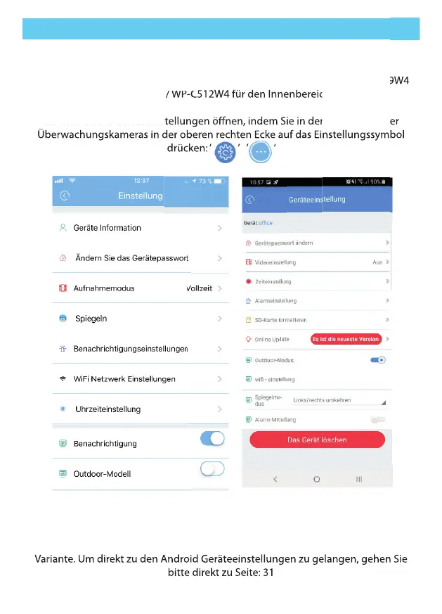 Variante. Um direkt zu den Android Geräteeinstellungen zu gelangen, gehen Sie