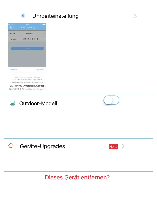 Sie können Ihre Überwachungskamera in den Geräteeinstellungen aus Ihrem App