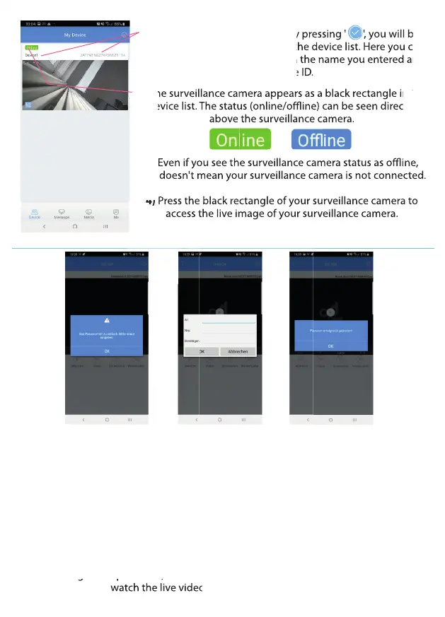 1) After pressing the black rectangle of your surveillance camera in the device list, you