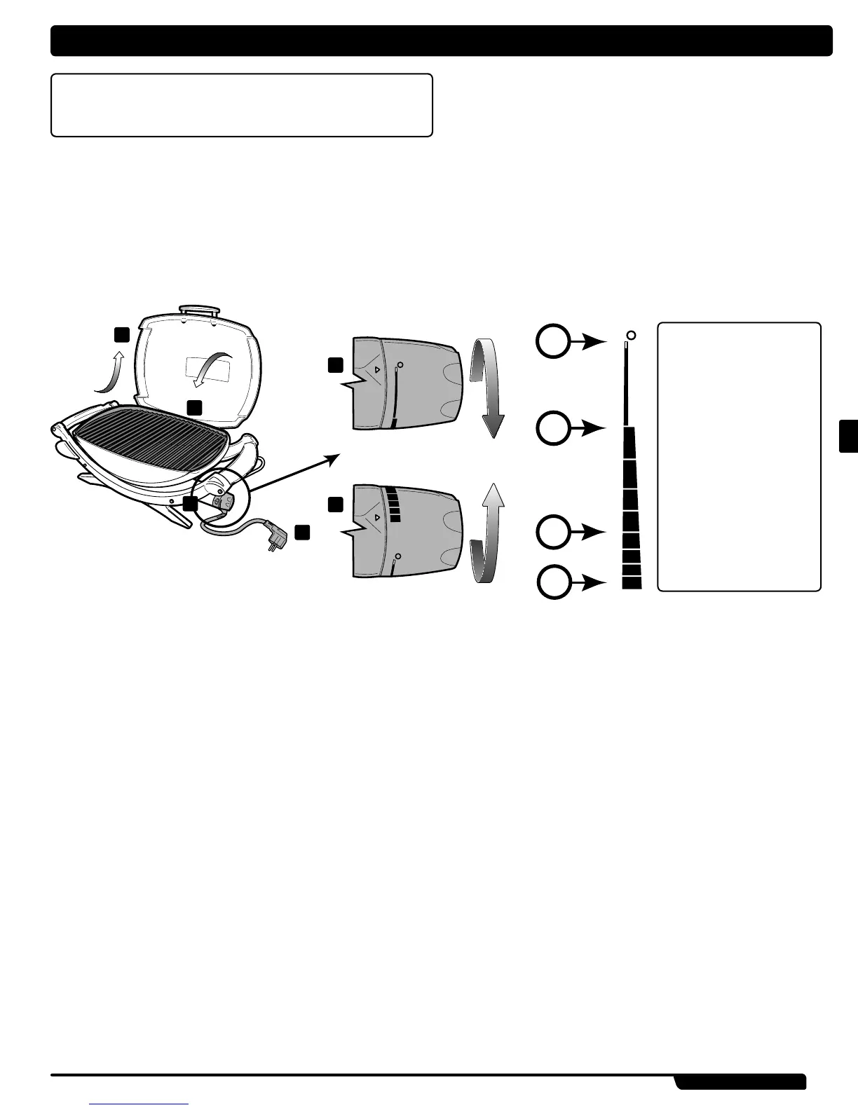 5) Pedehejte gril. Otote regulaní knoík do polohy HIGH (vysoká teplota)