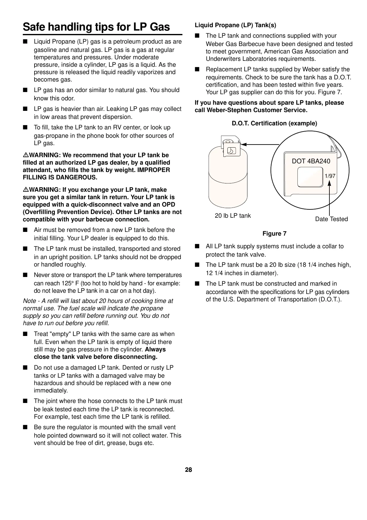 ■ Replacement LP tanks supplied by Weber satisfy the