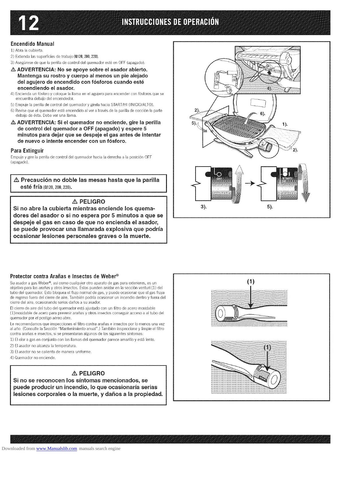 z_ ADVERTENCIA: No se apoye sobre el asador abierto.