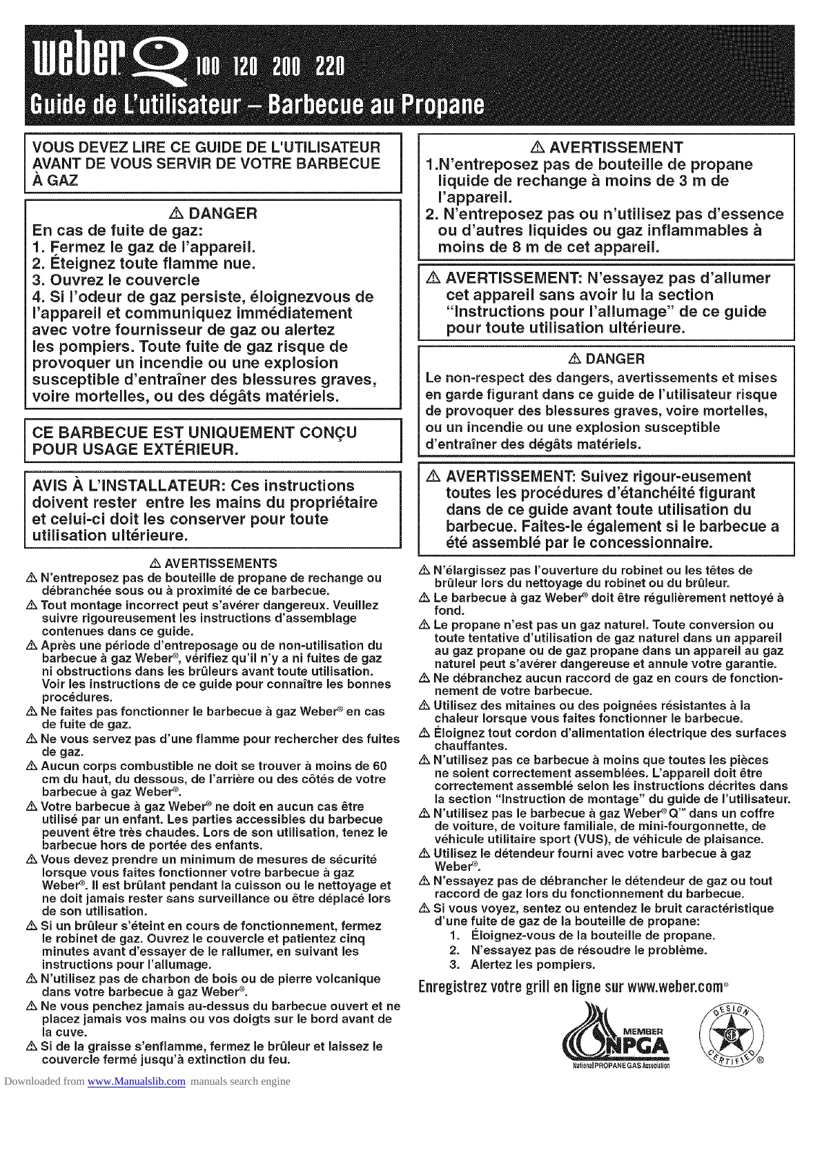 /k Votre barbecue a gaz Weber ° ne dolt en aucun cas 6tre