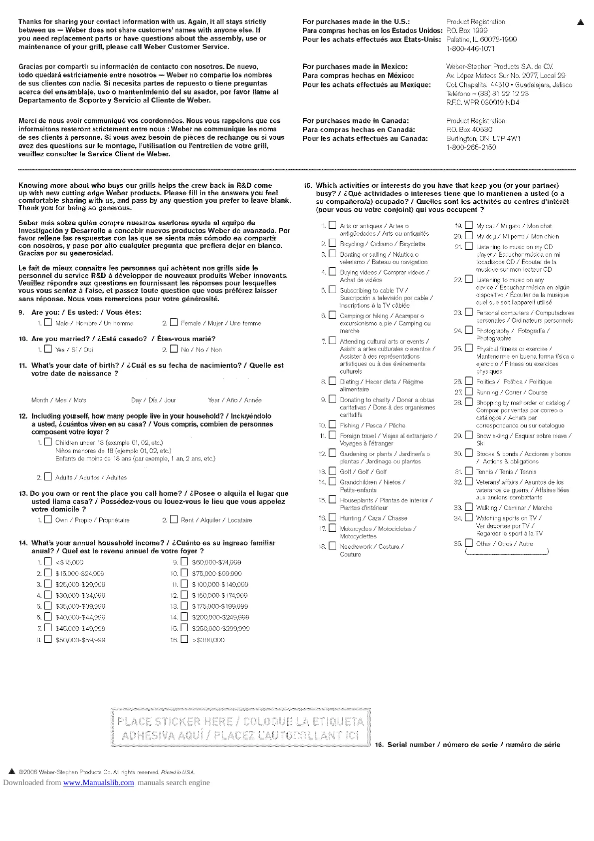 _, 82006 Weber Stephen Products Co, All rights reserved, Printedi_ USA