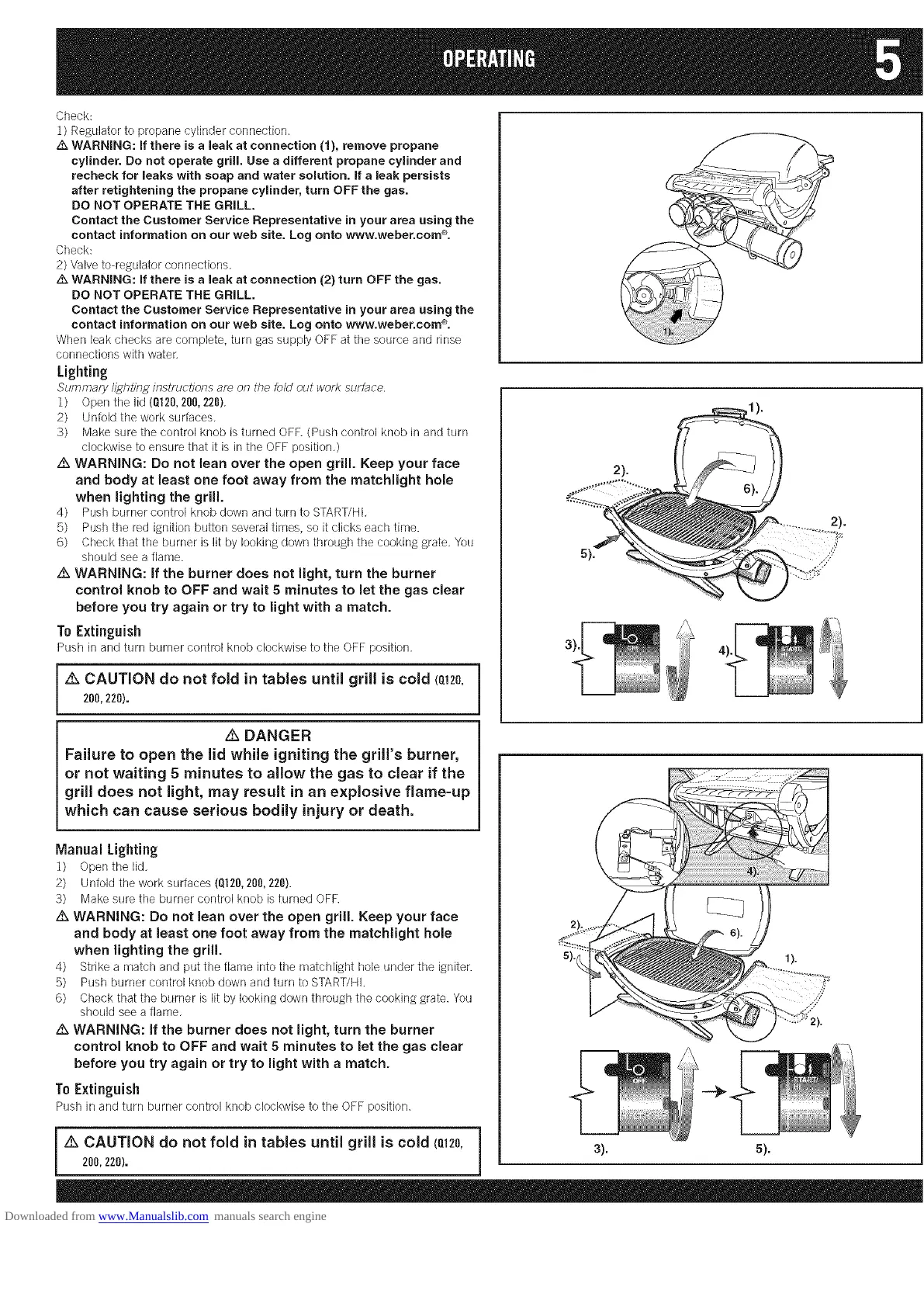 Z_ CAUTION do not fold in tables until grill is cold (Q120, _ 3). 5).