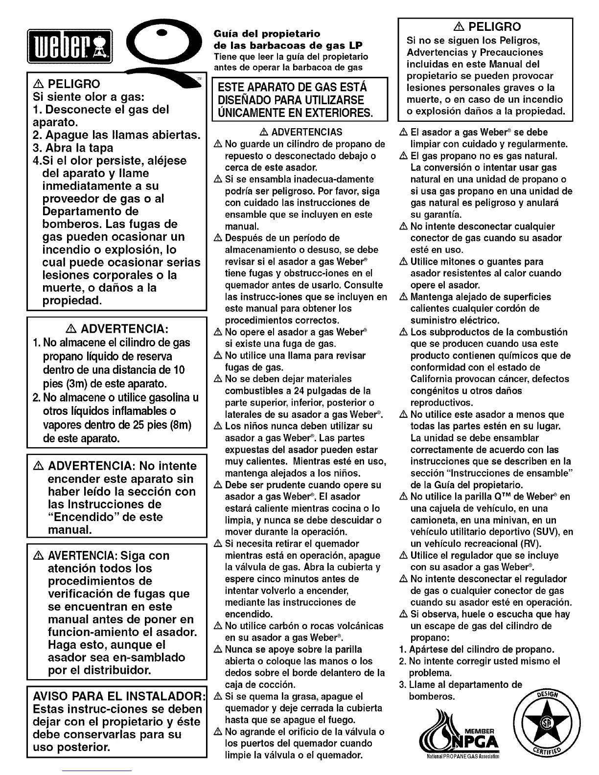 A_No opere el asador a gas Weber_