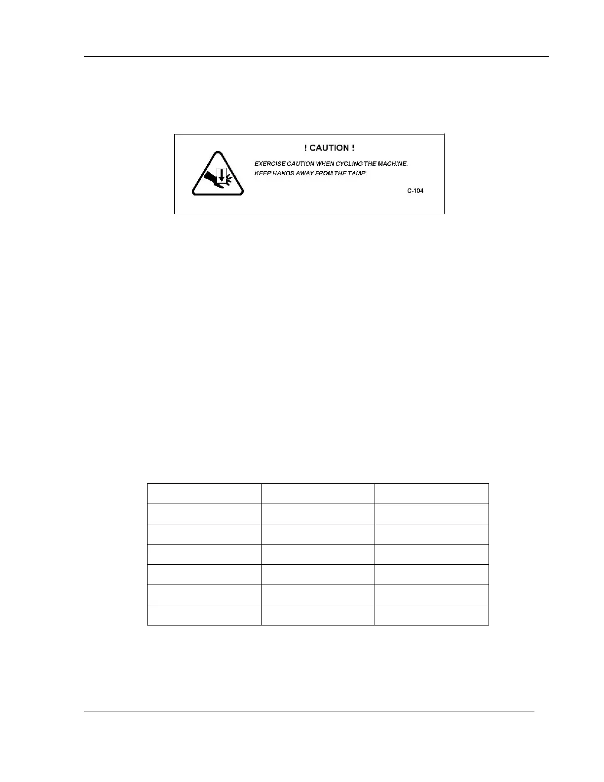 The tamp pressure, flow controls, and cylinder cushions are factory pre-set. Use the following