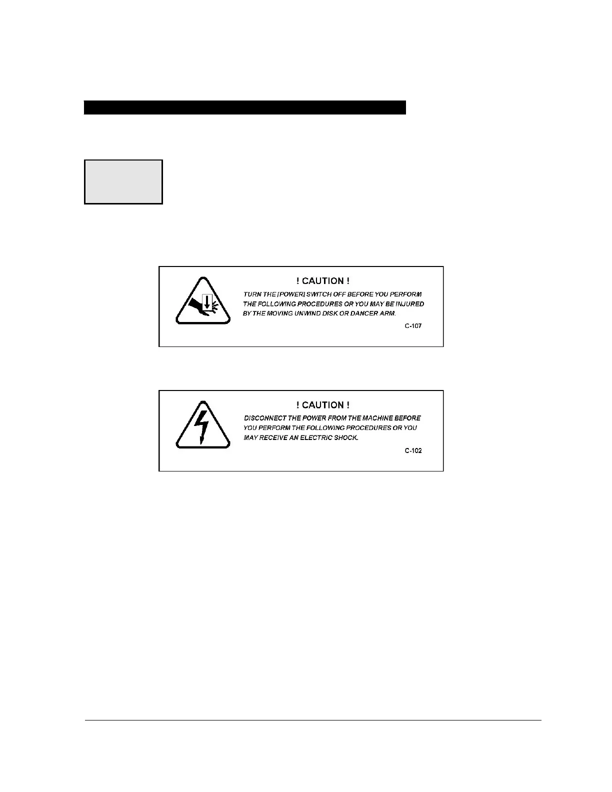 4. Check the machine for any evidence of loose screws, rollers, fixtures, etc.