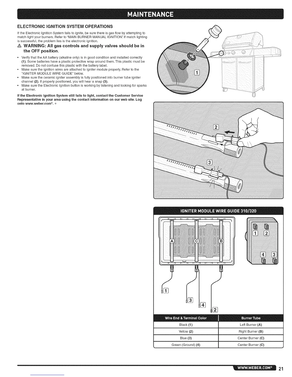 if the Electronic Ignition System still fails to light, contact the Customer Service