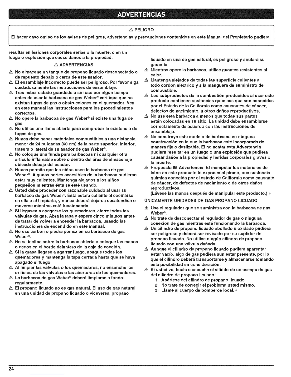 z_ No opere la barbacoa de gas Weber ®si existe una fuga de
